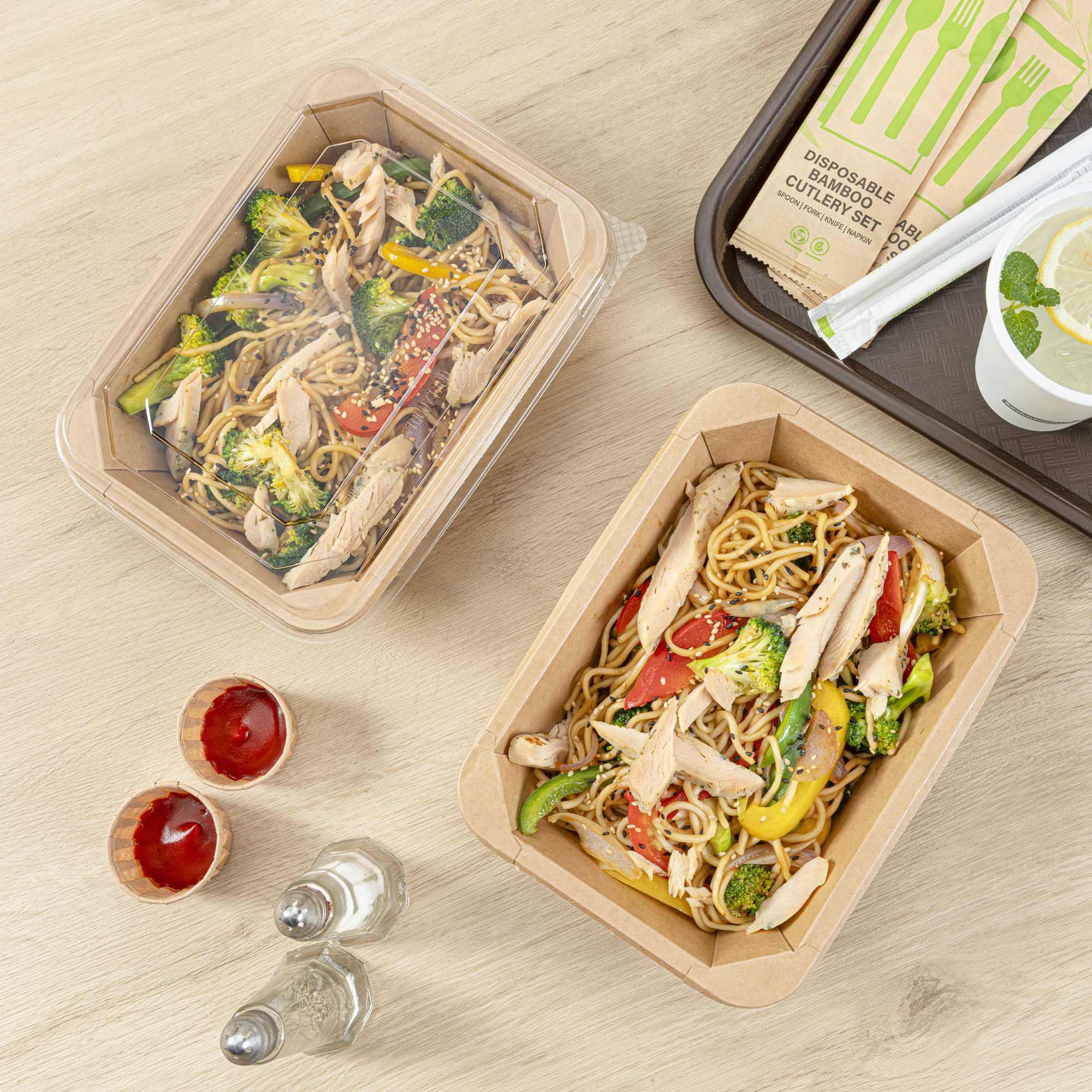 • Greaseproof PLA lining prevents leakage and maintains food quality