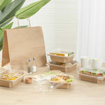These disposable kraft food containers are highly versatile and suitable for hot and cold foods, offering reliable performance across a wide range of temperatures. Serve stews, noodles, salads, chilled desserts, and more!