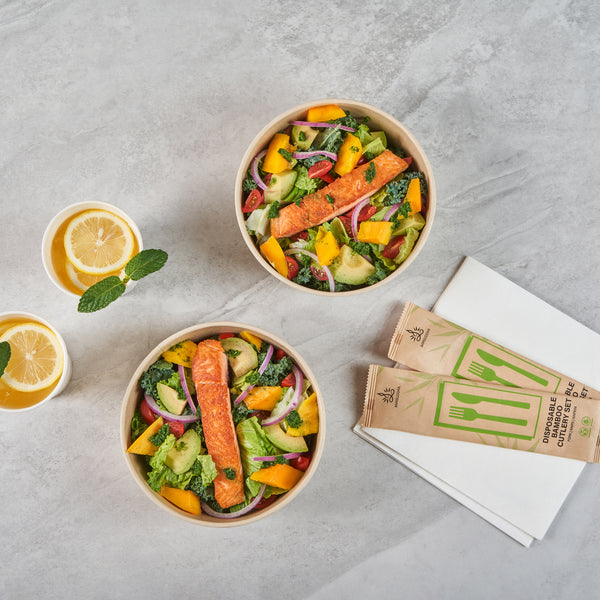 44 OZ BAMBOO PAPER SALAD CONTAINER - WITH PLA LINING, COMPOSTABLE