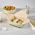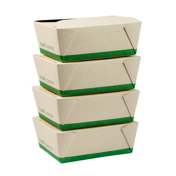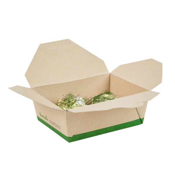 Ensure secure meal delivery with our Sustain Leak-Resistant Kraft Paper Takeout Container. Designed with a robust PLA lining, this takeout container effectively prevents leaks, ensuring a mess-free service for your patrons. The convenient tab-lock closure keeps meals intact during transport, making it an ideal to-go box for restaurants and catering businesses focused on maintaining meal presentation. Crafted from sustainably sourced paper, these disposable food containers are commercially compostable, supporting eco-friendly disposal practices and appealing to environmentally conscious consumers. Measuring 6.75 inches in length, 5.5 inches in width, and 2.6 inches in height, each container accommodates up to 45 ounces, providing ample space for various dishes. Enhance your service with reliable, biodegradable packaging that aligns with your sustainability goals. Each order includes 50 Sustain Leak-Resistant Kraft Paper Takeout Containers.