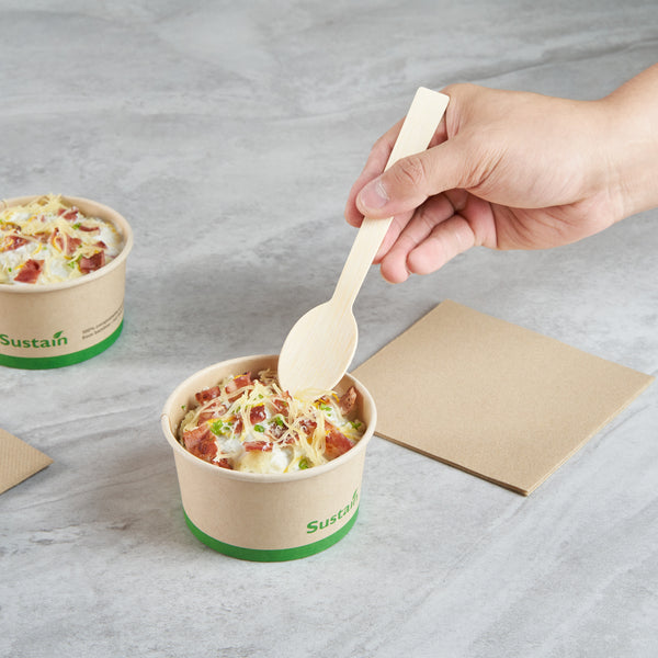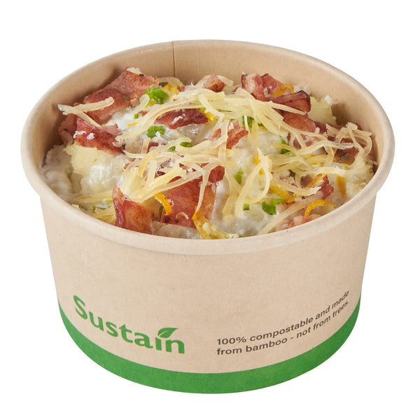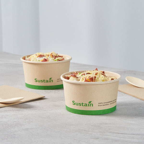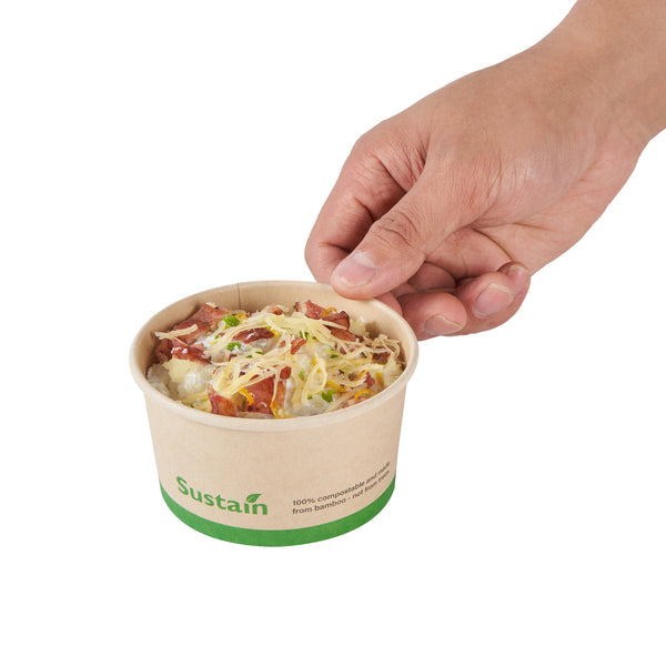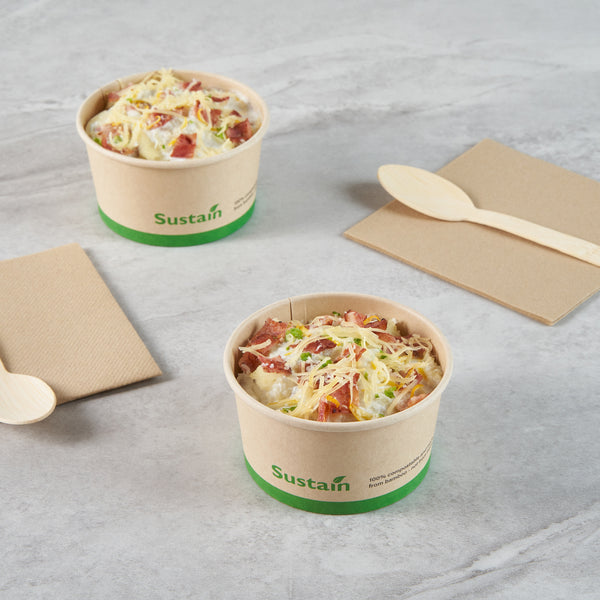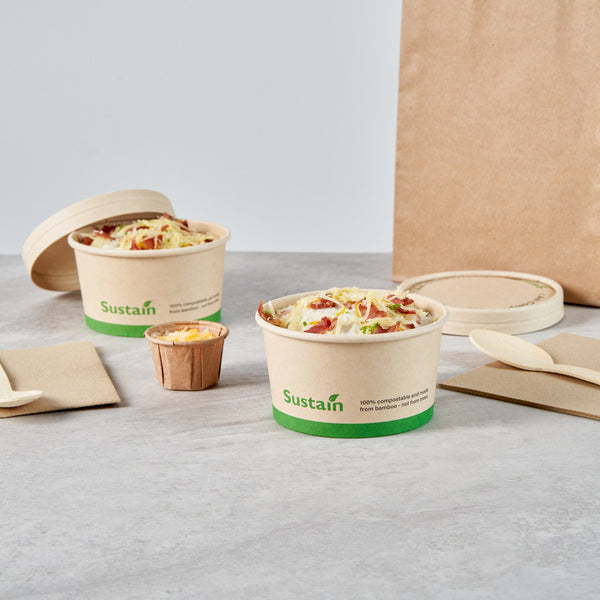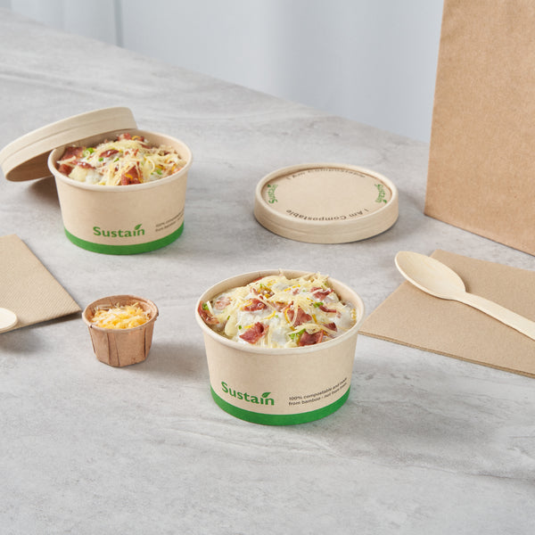 Serve sustainably without leaks or spills. Sustain Leak-Resistant Compostable Cups are designed with a PLA lining that prevents leaks, ensuring a mess-free serving. These compostable cups feature a rolled rim that securely seals with coordinating lids, providing reliable transport for takeaway orders. Crafted from sustainable paper, these cups support eco-friendly disposal practices, making them an excellent choice for environmentally conscious cafes. With a capacity of 8 ounces, these kraft paper cups offer the perfect size for serving small to medium drinks. Measuring 3.7 inches in both length and width, and standing 2.2 inches tall, they fit seamlessly into any beverage service operation. Enhance your coffee service with these disposable cups that align with your sustainability goals. Each order includes 200 Sustain Leak-Resistant Compostable Cups.