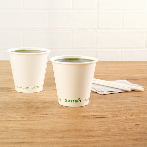 Enhance your eco-friendly beverage service with our sustainable solution. The Sustain Leakproof Compostable 9 Ounce Cold Cup combines premium paper and a moisture-resistant PLA bioplastic lining to prevent leaks, ensuring reliable performance in busy foodservice settings. As a compostable cold cup, it supports eco-friendly disposal practices, aligning with your sustainability initiatives while offering a capacity of 9 ounces to accommodate a variety of beverages. Its freezer-safe construction makes it ideal for ice storage and transport, while the tightly rolled rim guarantees a comfortable, leakproof drinking experience, making it a perfect biodegradable cold drink cup for quick-service restaurants and cafés. The slightly tapered shape provides a comfortable grip, is cold food friendly, and allows for easy stacking and storage. Choose these PLA lined cups to boost operational efficiency and reduce environmental impact. Each order includes 50 Sustain Leakproof 9 oz Compostable Cold Cups.