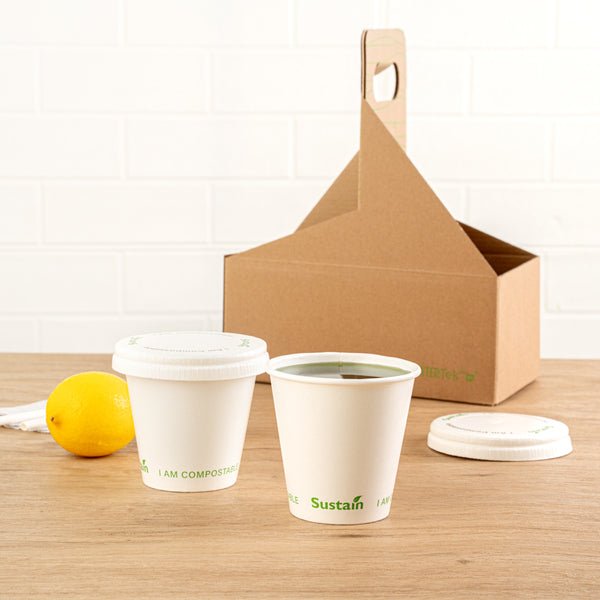 - Compostable PLA lining reduces landfill waste impact