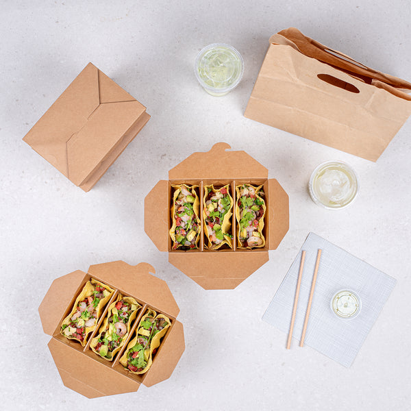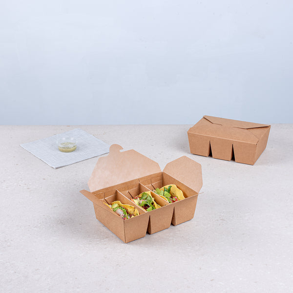 KRAFT PAPER TACO TAKE OUT CONTAINER - PLA LINING, COMPOSTABLE