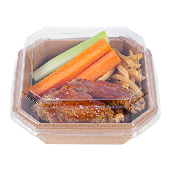 OCTAGONAL CLEAR PLA PLASTIC DOME LID - FITS 22 OZ CONTAINER