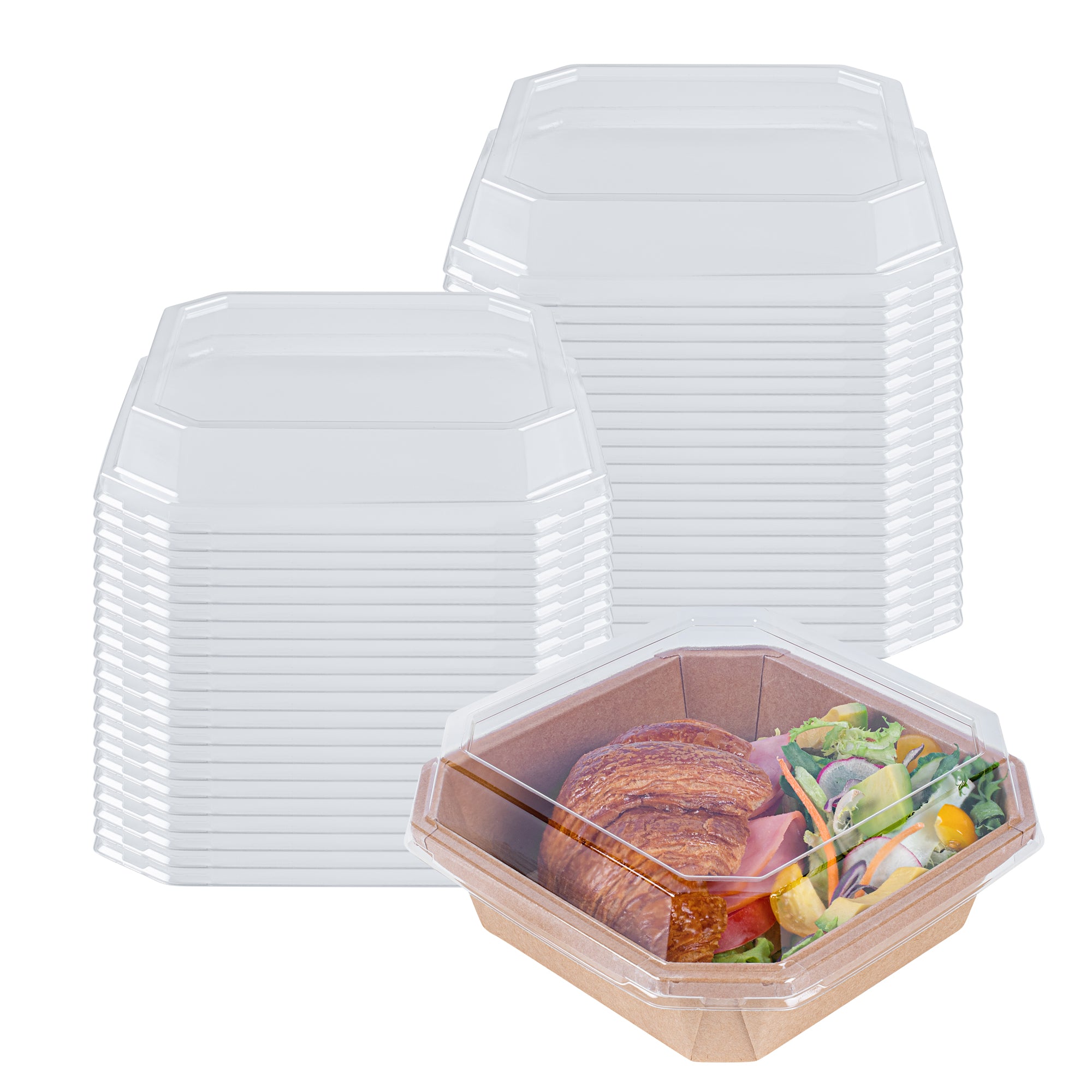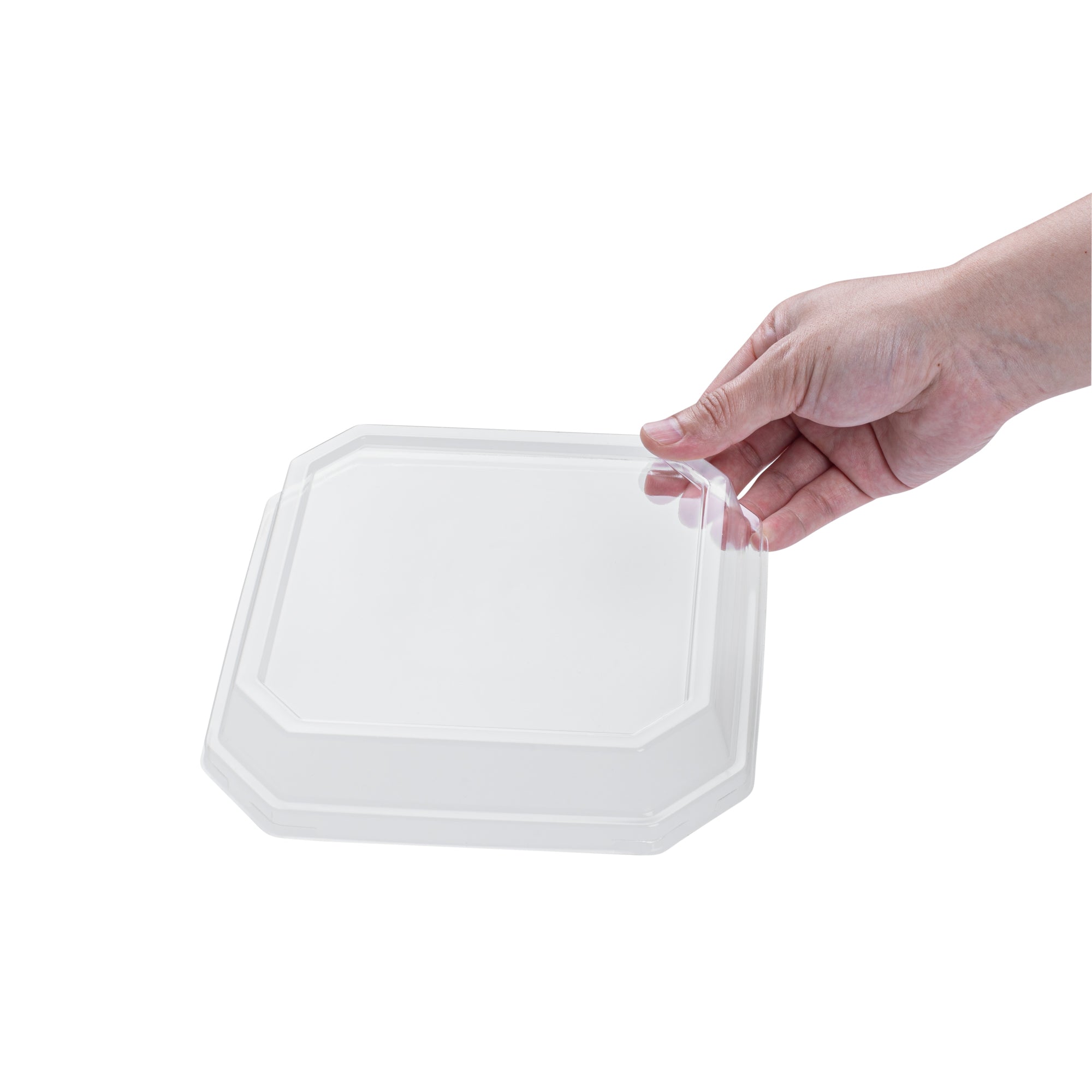OCTAGONAL CLEAR PLA PLASTIC DOME LID - FITS 34 OZ CONTAINER
