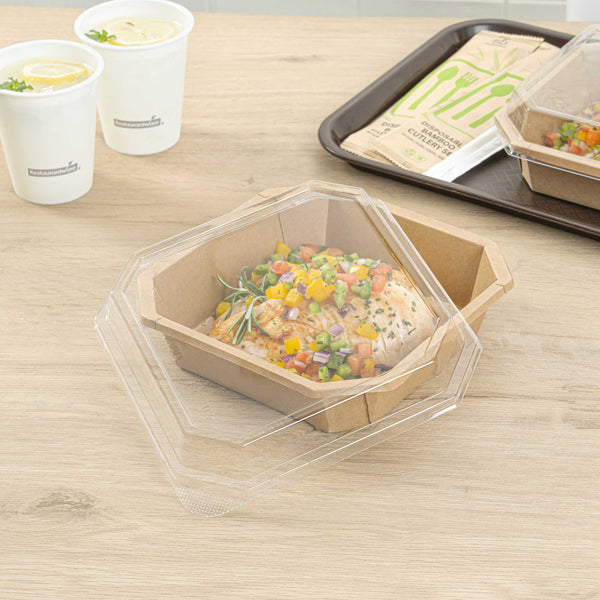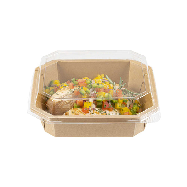 OCTAGONAL CLEAR PLA PLASTIC DOME LID - FITS 41 OZ CONTAINER