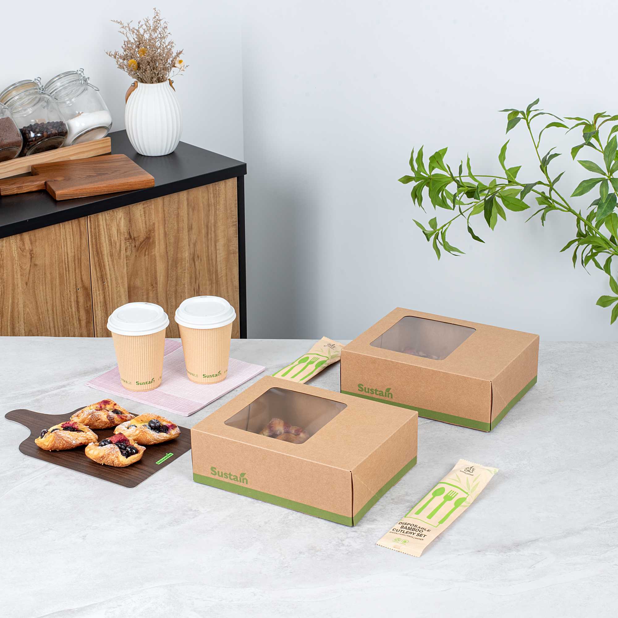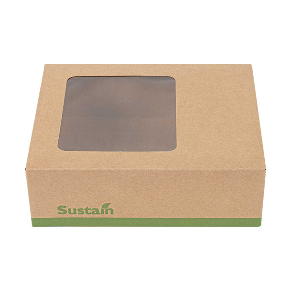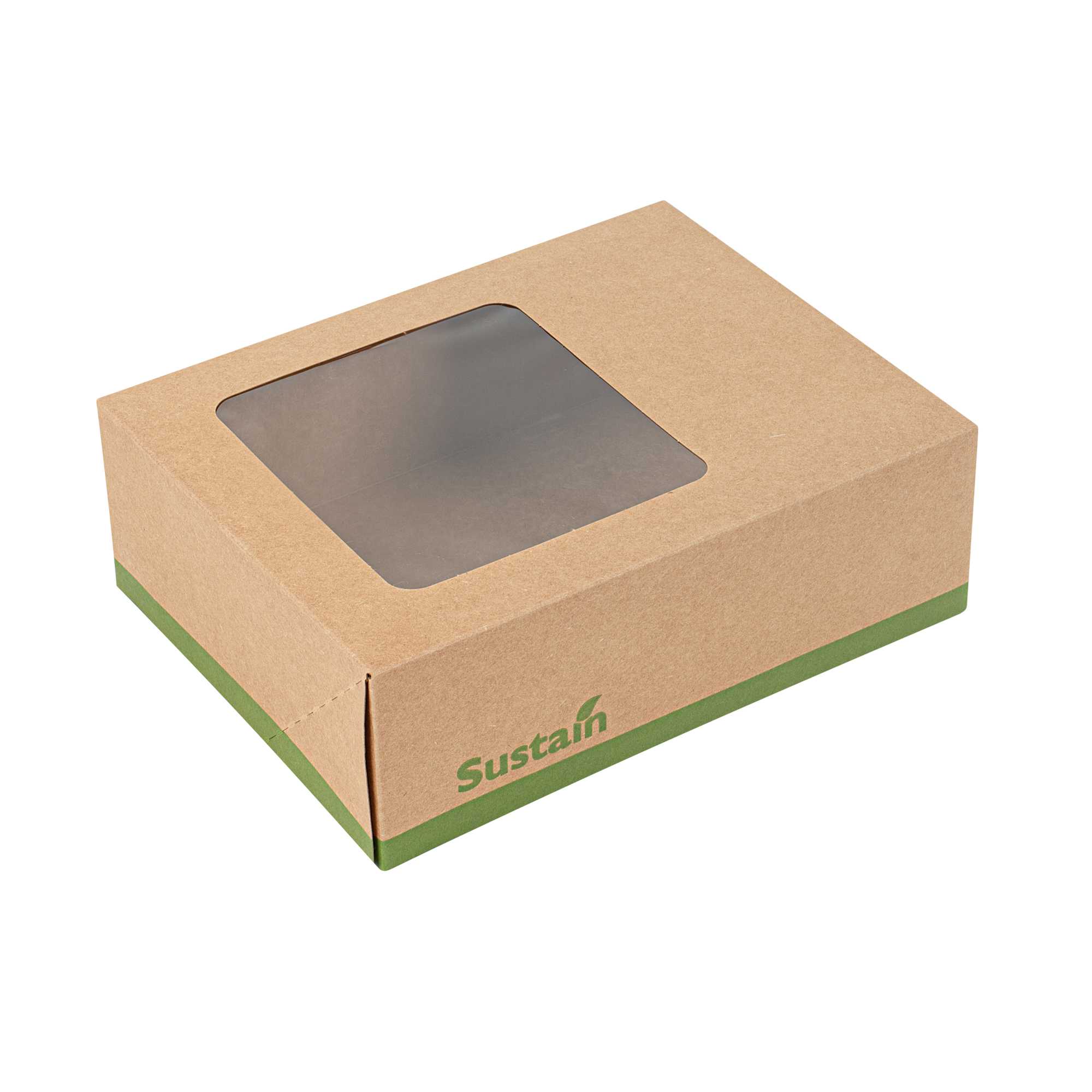 Enhance your bakery’s appeal with effective packaging solutions. Sustain Greaseproof Bakery Boxes offer a window display that boosts visibility for impulse purchases, making them ideal bakery boxes for showcasing your delicious creations. Crafted from kraft paper, these boxes feature a greaseproof design that protects the packaging from leaks, ensuring your baked goods stay fresh and presentable. Their freezer-safe capability preserves the freshness of your products, perfect for both hot and cold food items, making them reliable window pop up boxes for any bakery or café. Measuring 9 inches in length, 7 inches in width, and 3 inches in height, these kraft paperboard boxes are spacious enough to accommodate various baked goods. Elevate your packaging game with these versatile boxes that support sustainability. Each order includes 25 Sustain Greaseproof Bakery Boxes.