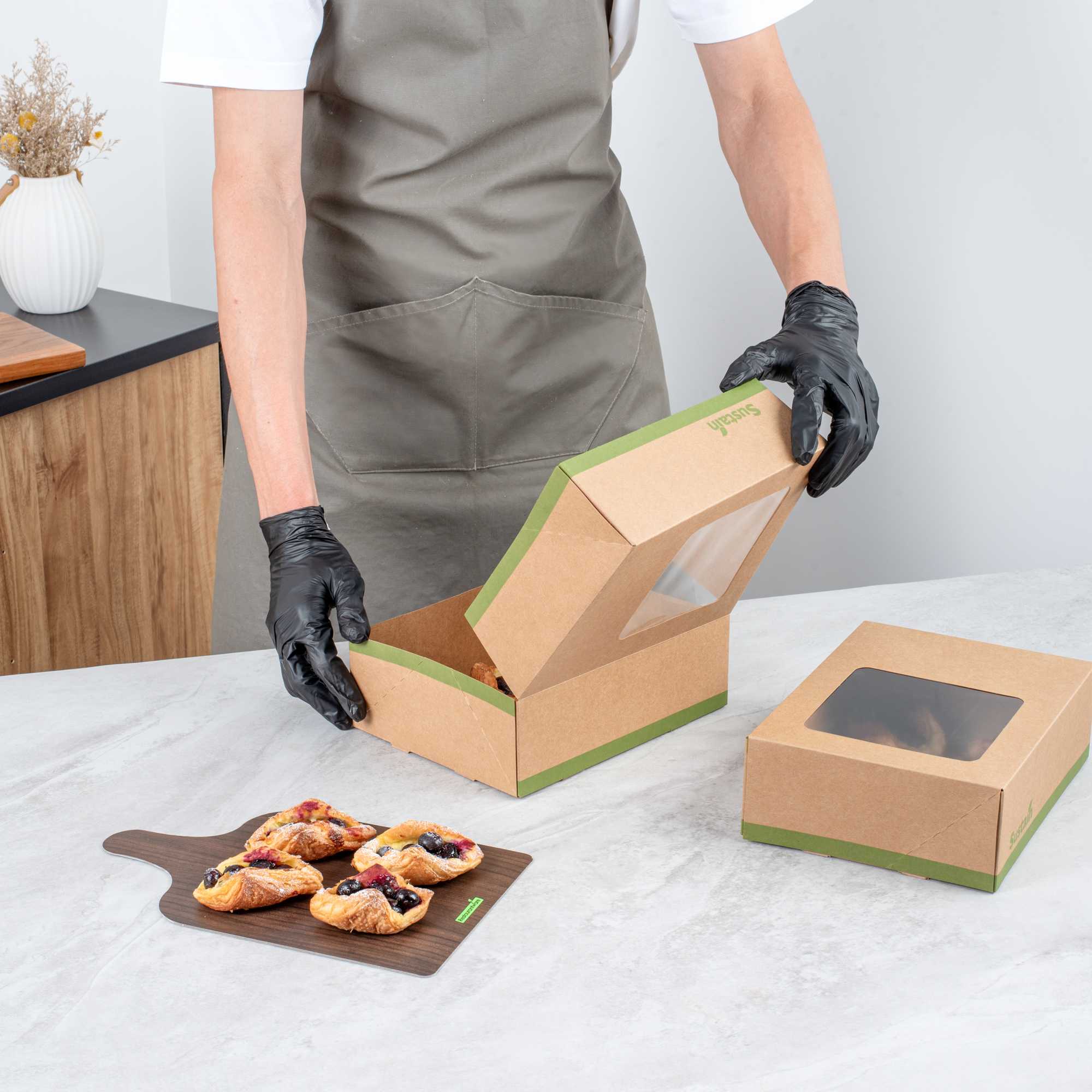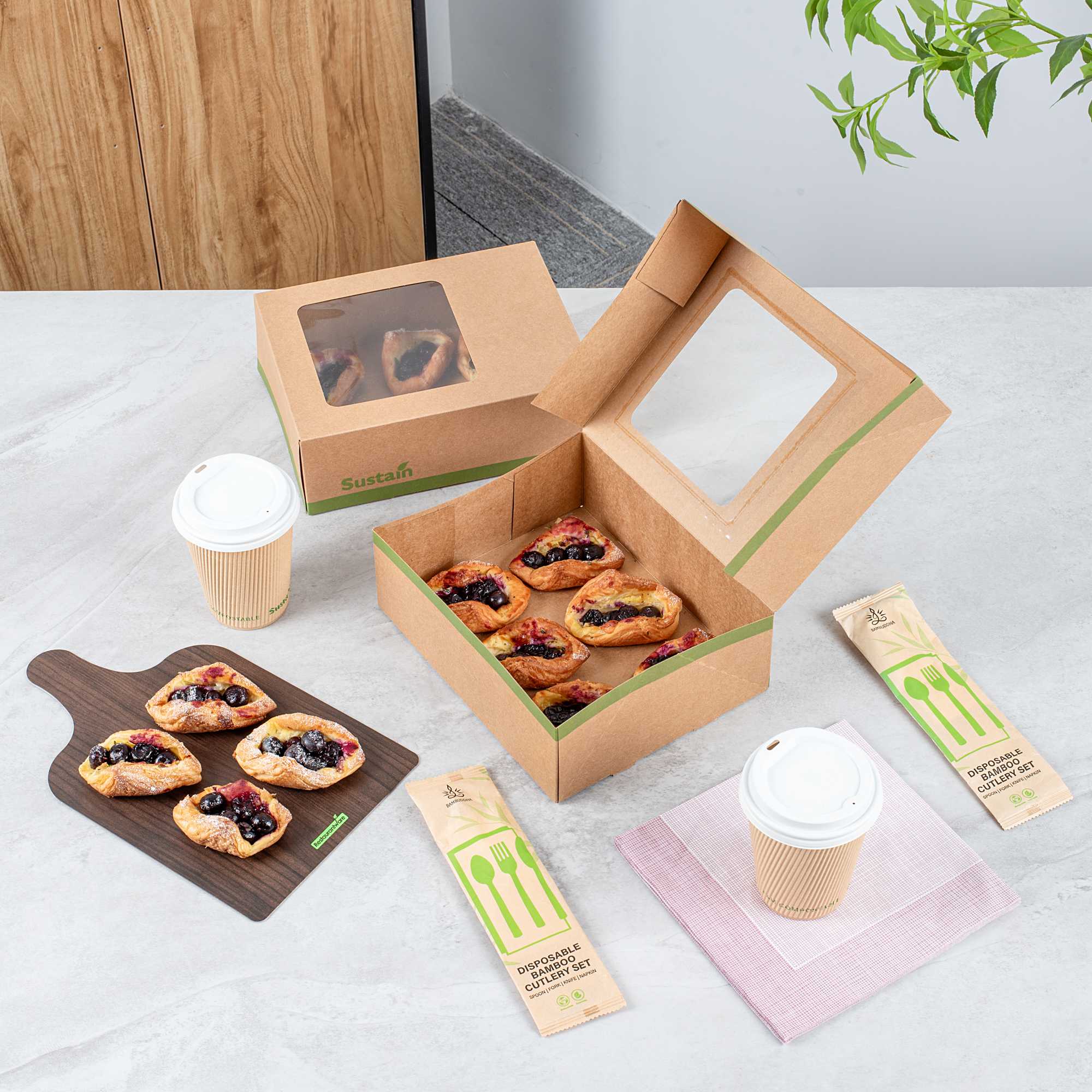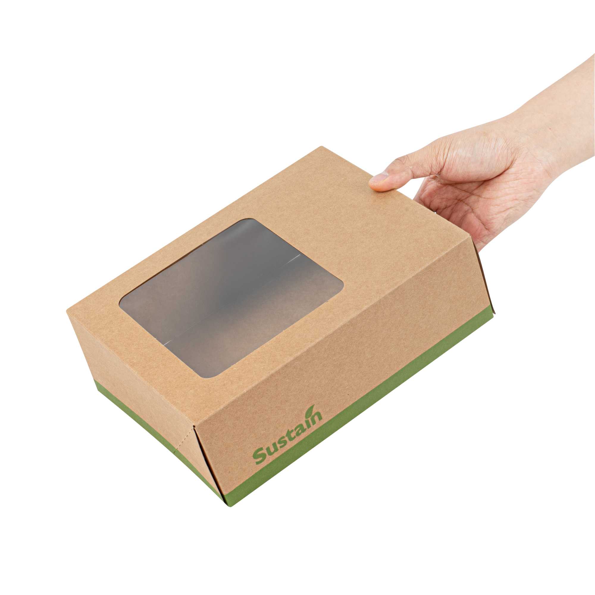 Enhance your bakery’s appeal with effective packaging solutions. Sustain Greaseproof Bakery Boxes offer a window display that boosts visibility for impulse purchases, making them ideal bakery boxes for showcasing your delicious creations. Crafted from kraft paper, these boxes feature a greaseproof design that protects the packaging from leaks, ensuring your baked goods stay fresh and presentable. Their freezer-safe capability preserves the freshness of your products, perfect for both hot and cold food items, making them reliable window pop up boxes for any bakery or café. Measuring 9 inches in length, 7 inches in width, and 3 inches in height, these kraft paperboard boxes are spacious enough to accommodate various baked goods. Elevate your packaging game with these versatile boxes that support sustainability. Each order includes 25 Sustain Greaseproof Bakery Boxes.