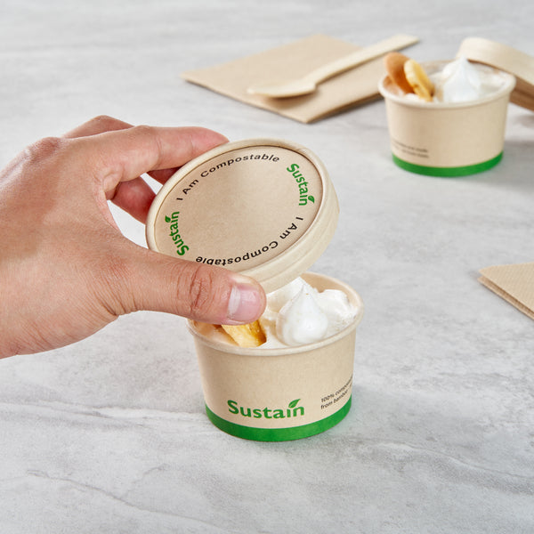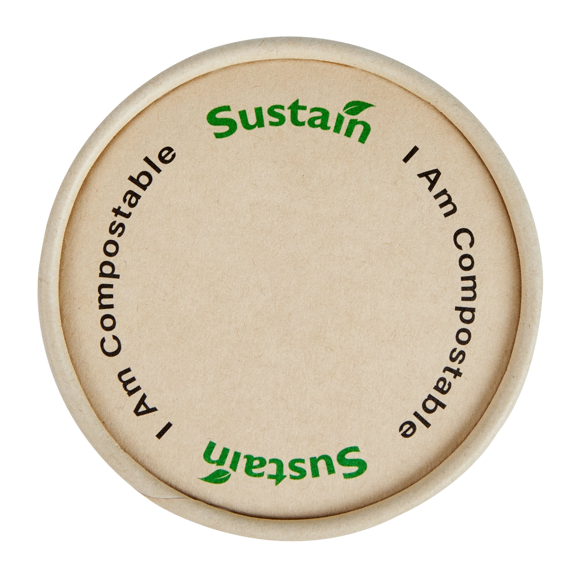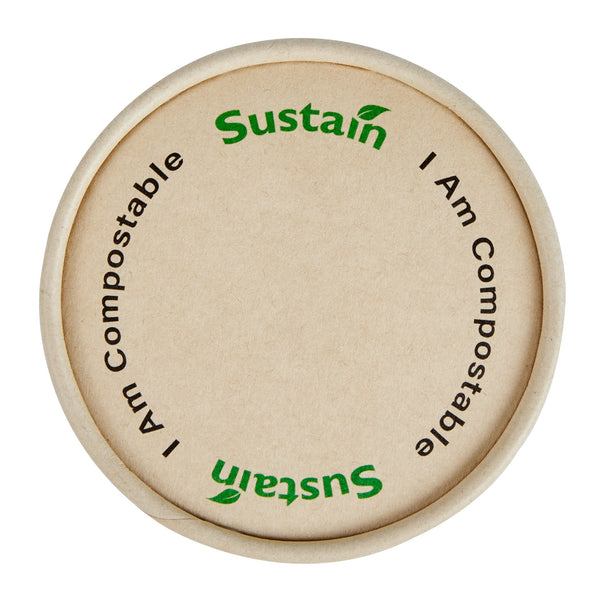 Ensure clean and efficient service with leak-resistant lids. Sustain Compostable Cup Lids feature a PLA lining that prevents leaks, offering a mess-free solution for serving both hot and cold beverages. These compostable cup lids are crafted from sustainable paper, making them an ideal choice for eco-conscious establishments seeking biodegradable lids that support environmentally friendly disposal. With a sturdy design, these disposable cup lids secure beverages safely without becoming soggy, ensuring a reliable performance for foodservice professionals. Measuring 3 inches in length and width, it provides a snug fit that prevents spills. Add an eco-friendly touch to your beverage service while maintaining functionality and dependability. Each order includes 200 Sustain Compostable Cup Lids.
