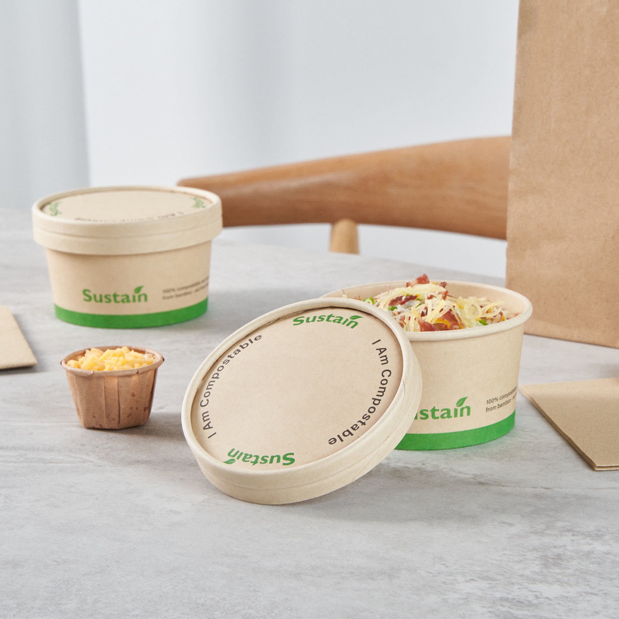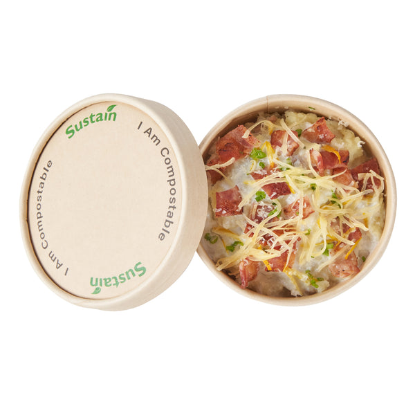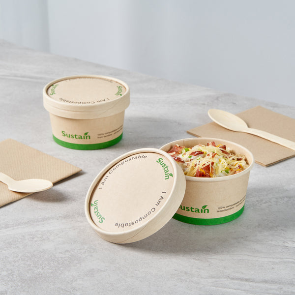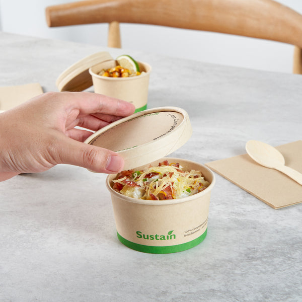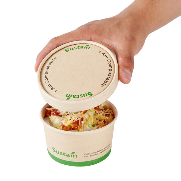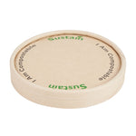 Ensure a mess-free service with reliable lid solutions. The Sustain Leak-Resistant Compostable Cup Lid features a PLA lining that prevents leaks, ensuring mess-free serving for your customers. With its sturdy design, this disposable cup lid securely holds both hot and cold beverages, maintaining the integrity of your drinks without getting soggy. Crafted from sustainable paper, this lid is commercially compostable and allows for an eco-friendly disposal, reducing your establishment’s environmental footprint. Measuring 3.8 inches in length, this paper lid fits a variety of cup sizes and provides a dependable seal for on-the-go service. Choose this kraft-colored lid to complement your cafe's sustainable practices while enhancing customer satisfaction. Each order includes 200 Sustain Leak-Resistant Compostable Cup Lids.