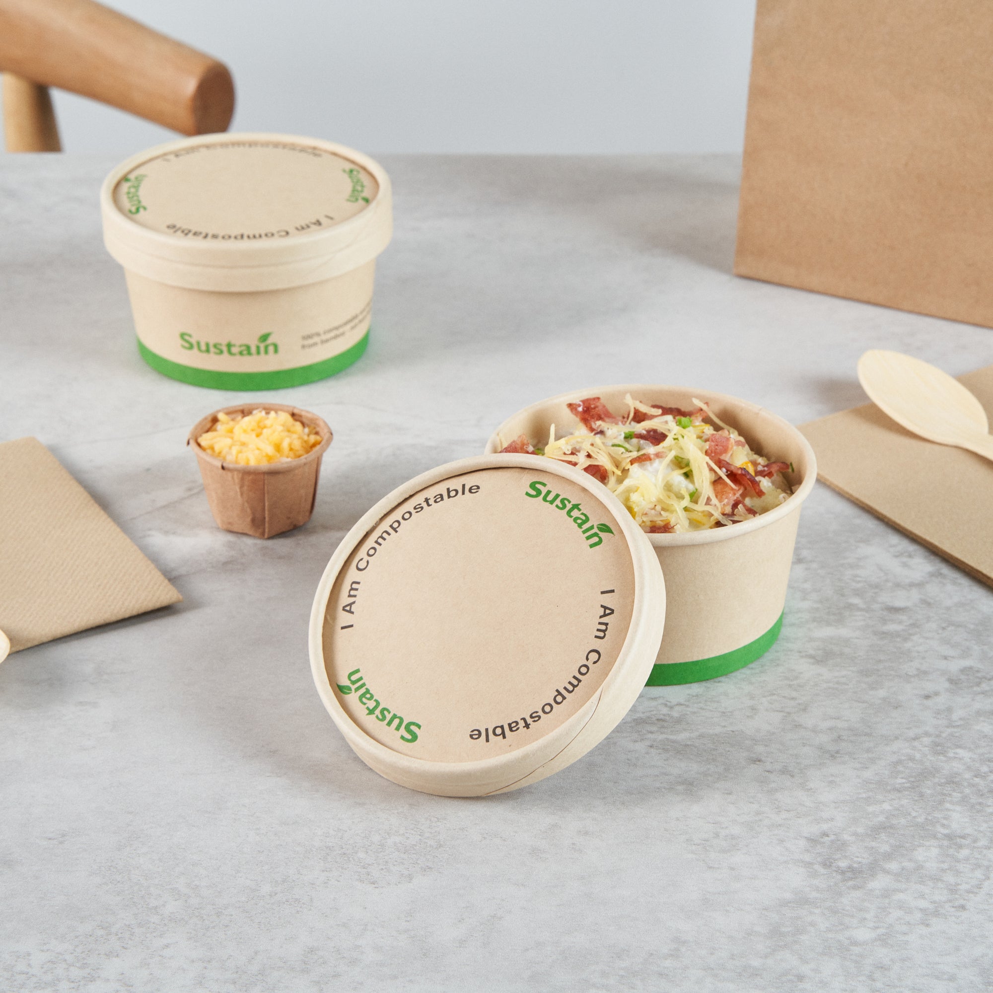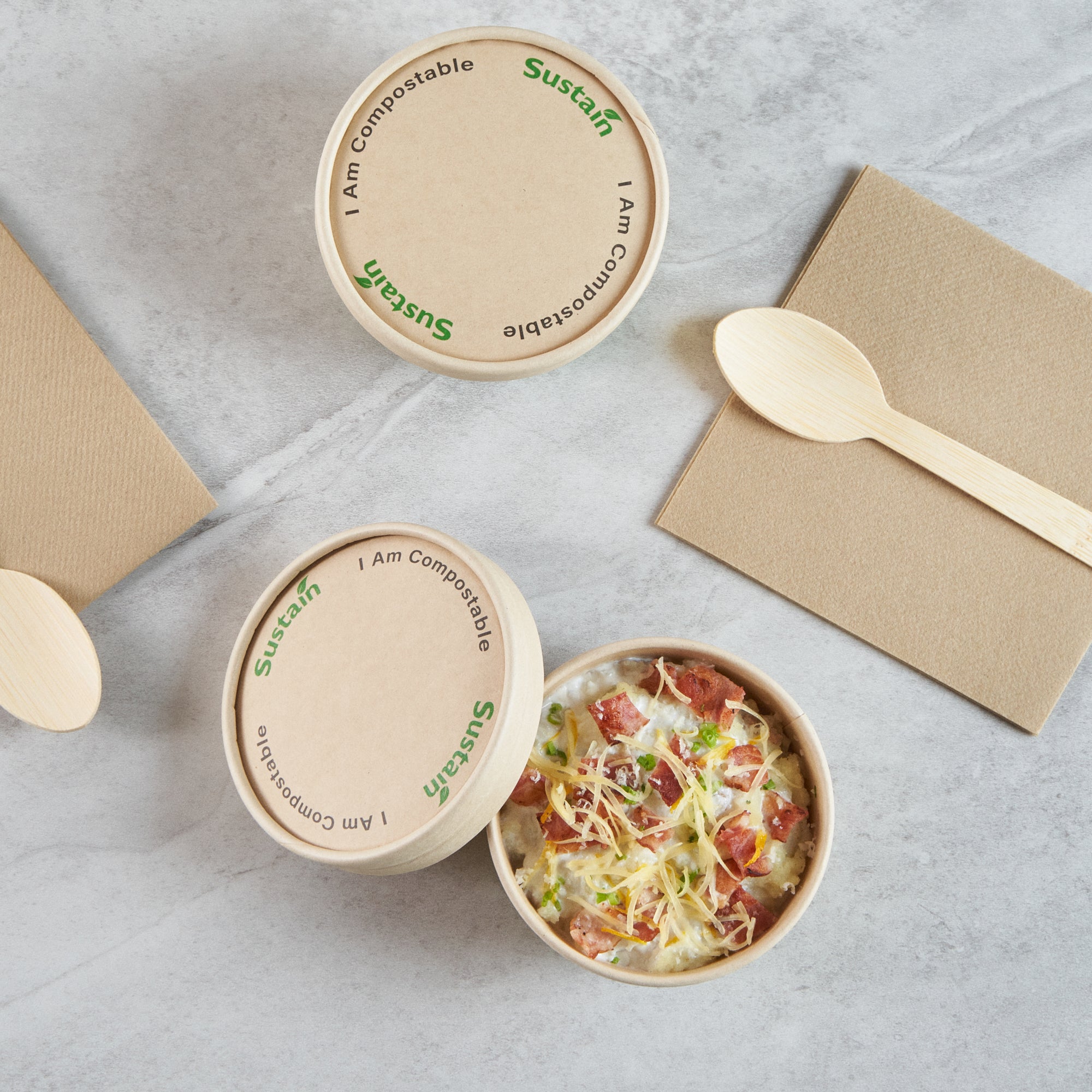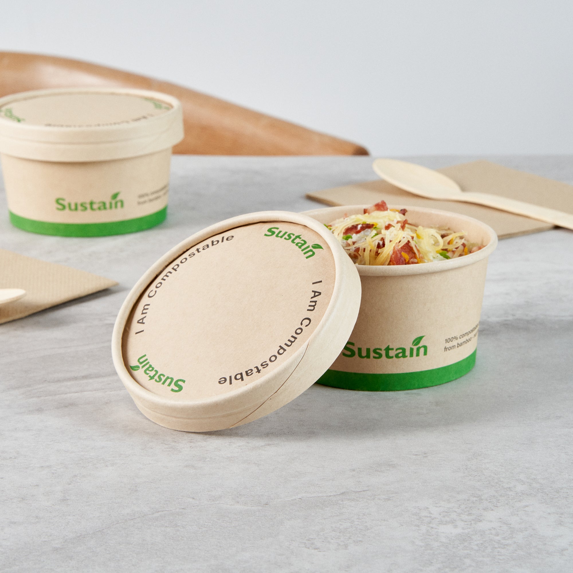 Ensure a mess-free service with reliable lid solutions. The Sustain Leak-Resistant Compostable Cup Lid features a PLA lining that prevents leaks, ensuring mess-free serving for your customers. With its sturdy design, this disposable cup lid securely holds both hot and cold beverages, maintaining the integrity of your drinks without getting soggy. Crafted from sustainable paper, this lid is commercially compostable and allows for an eco-friendly disposal, reducing your establishment’s environmental footprint. Measuring 3.8 inches in length, this paper lid fits a variety of cup sizes and provides a dependable seal for on-the-go service. Choose this kraft-colored lid to complement your cafe's sustainable practices while enhancing customer satisfaction. Each order includes 200 Sustain Leak-Resistant Compostable Cup Lids.