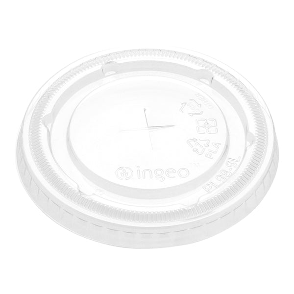 Keep beverages secure with our Sustain round clear PLA plastic flat lid, designed to fit 9-, 12-, 16-, and 20-ounce drinking cups. Made from PLA, this clear compostable lid offers a sustainable solution without sacrificing strength or clarity. Cold food friendly and freezer-safe, it ensures dependable performance for iced coffees, smoothies, and chilled drinks. The flat design allows cups to stack easily, saving storage space while maintaining a sleek presentation. A rolled rim reinforces durability and provides a snug, spill-resistant fit for coordinating cups. Measuring 3.74 inches in diameter, this versatile lid is sold in a 1,000 count box.