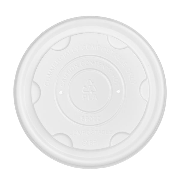 ROUND WHITE PLA PLASTIC LID - COMPOSTABLE