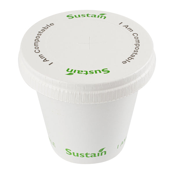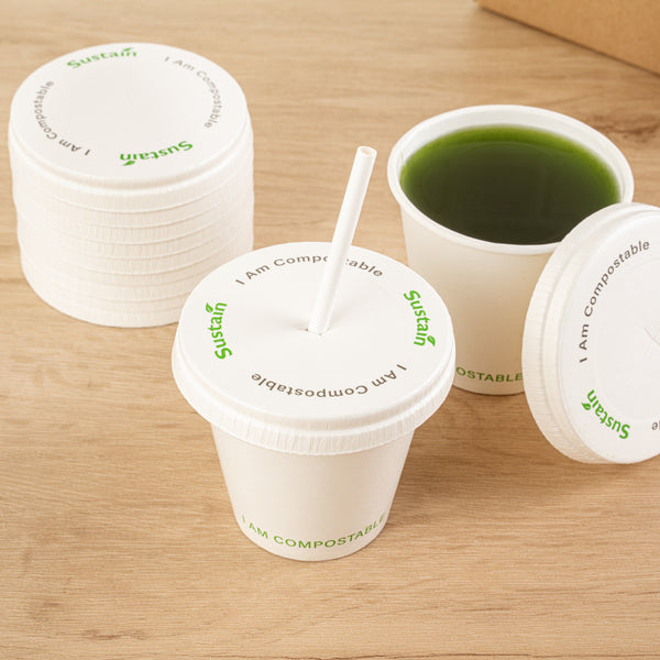 Optimize your beverage service with leakproof, eco-friendly solutions. Sustain Leakproof White Compostable Cup Lids – Universal Fit, Paper – 3.54 inches by 3.54 inches ensures a secure seal to prevent spills, making them the ideal compostable cup lids for quick-service restaurants and cafes. Made from PLA-lined paper, these lids provide a leak-resistant barrier that supports cold beverage service while aligning with sustainability initiatives. Featuring a convenient straw slot, these drink lids with straw slots allow easy access to refreshments without removing the lid, enhancing customer experience. Their universal fit accommodates various cup sizes (9, 12, 16, 20, and 22 ounces), simplifying inventory management and reducing the need for multiple lid types. The flat, durable design supports efficient stacking and storage, making these disposable cup lids a valuable addition to any foodservice operation. Secure your beverage service effortlessly today with these eco-conscious lids. Each order includes 50 Sustain Leakproof White Compostable Cup Lids.