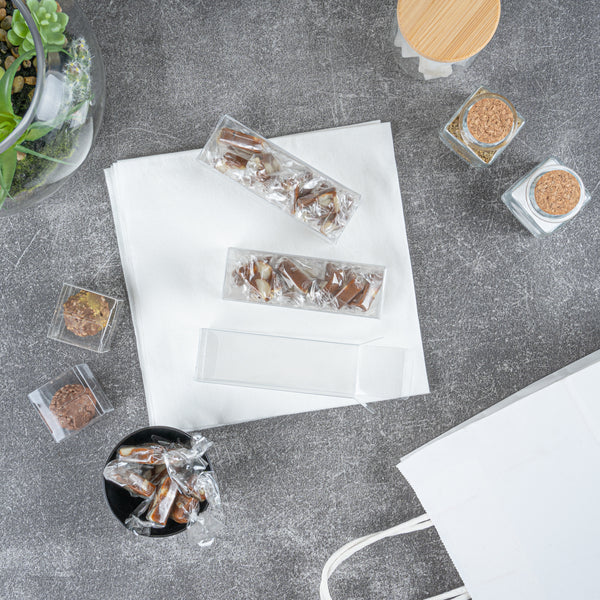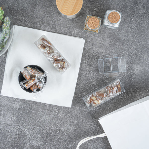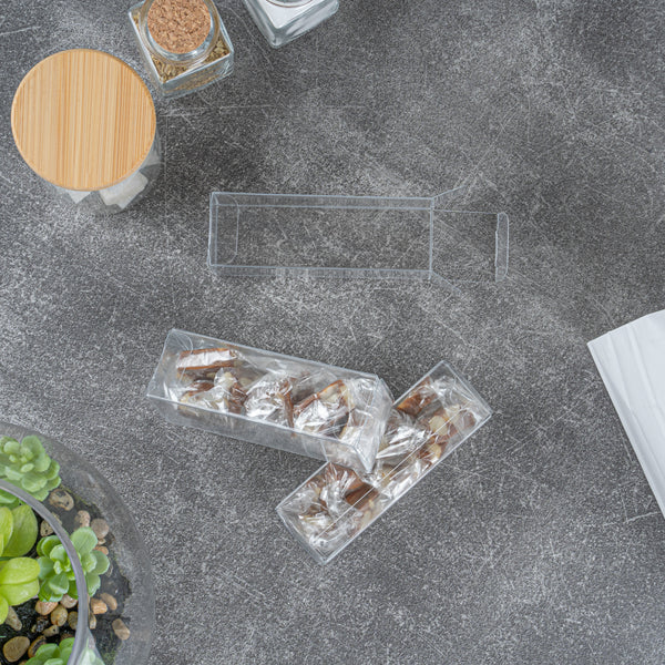 Our candy boxes are crystal clear so your guests can easily see their sweets or party favors in each box. Show off your colorful candies or delicious baked goods!
