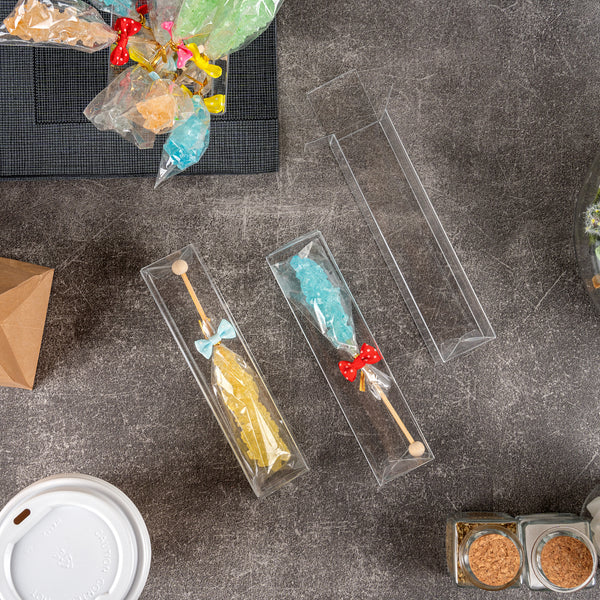 Our candy boxes are crystal clear so your guests can easily see their sweets or party favors in each box. Show off your colorful candies or delicious baked goods!