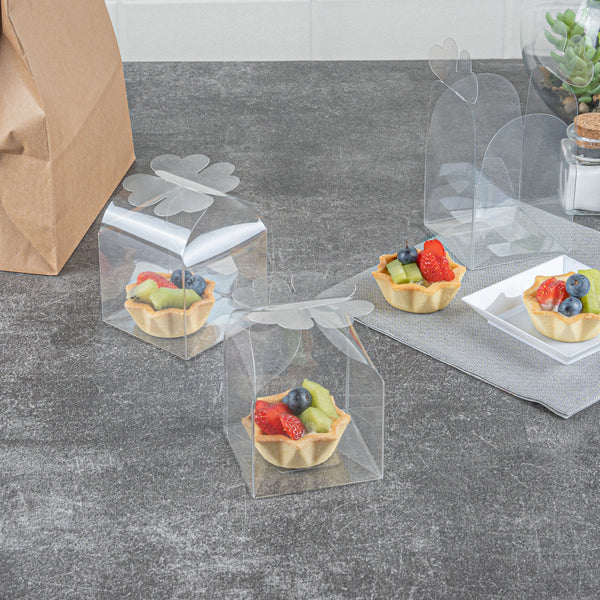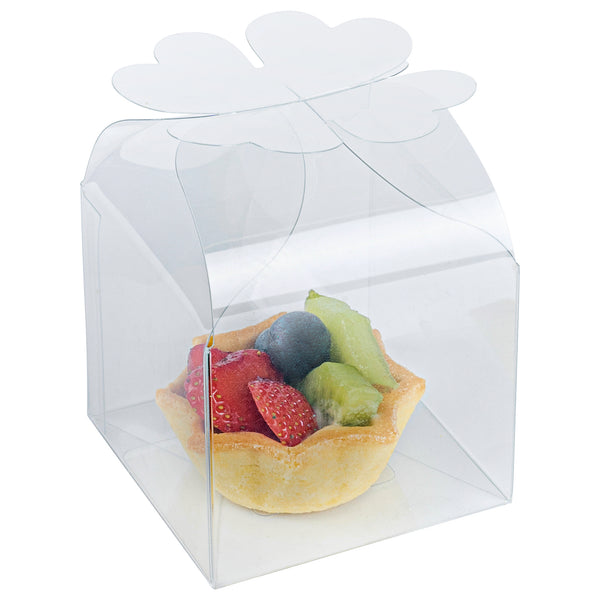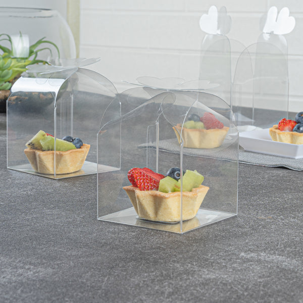 Our candy boxes are crystal clear so your guests can easily see their sweets or party favors in each box. Show off your colorful candies or delicious baked goods!