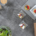 Protective film allows you to fill boxes without having to worry about leaving fingerprints or scratches behind. Simply peel off the film after packaging to reveal a spotless dessert display.