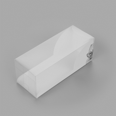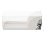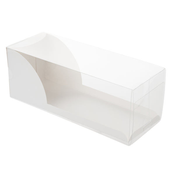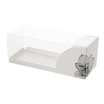 RECTANGLE CLEAR PLASTIC ECLAIR BOX - WHITE PAPER SLEEVE, LOTUS ACCENT