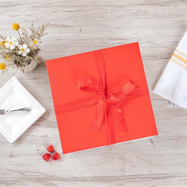 Every order includes 10 bases, 10 lids, 10 plastic containers, and ribbon, providing you with all the essentials to easily build your cake boxes. Conveniently package all types of baked goods for special occasions.