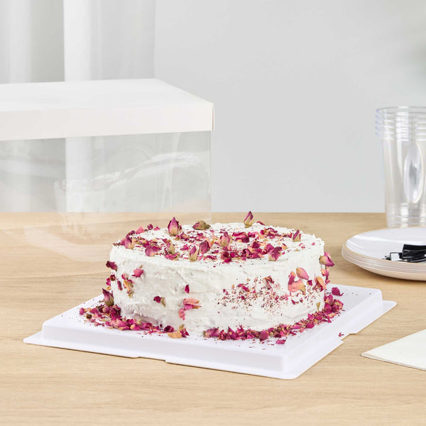 Every order includes 10 bases, 10 lids, 10 plastic containers, and ribbon, providing you with all the essentials to easily build your cake boxes. Conveniently package all types of baked goods for special occasions.