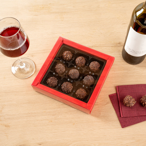 SQUARE RED PAPER CANDY / CHOCOLATE BOXES - 9 COMPARTMENTS