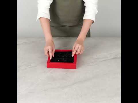 Indulge your guests with delicious treats with our Sweet Vision Square Red Paper Candy / Chocolate Boxes. Constructed using heavy-duty paper, these candy boxes are extremely durable and sturdy enough to hold all the goodies. Each cavity in the 9-compartment tray of these paper chocolate boxes perfectly holds a single chocolate. Designed with a clear plastic sleeve, these paper candy boxes show off all the chocolate while securely holding the candies. The slide-open sleeves of this disposable chocolate packaging enable easy opening and closing. With a greaseproof coating, this chocolate packaging doesn't get soggy while carrying greasy treats. The red finish of these gift packaging boxes gives a charming effect to your sweets, making them even more irresistible. Measuring 7.25 inches long by 7.25 inches wide by 1.5 inches tall, these gift packaging boxes are ideal for holding chocolates, cookies, or cakes. Shipped unassembled in a 100 count box.