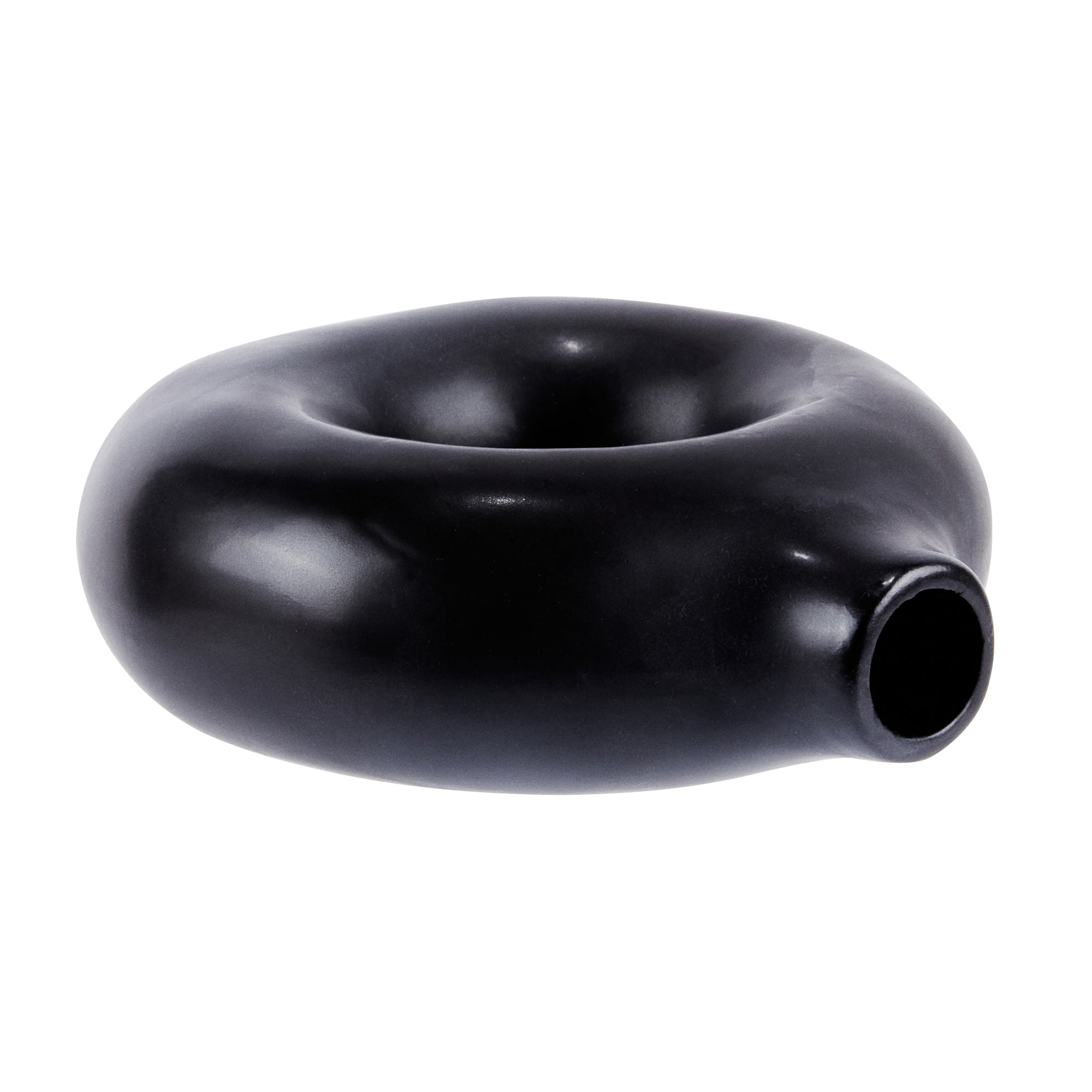 Elevate your decor with our Table Art Black Ceramic Donut Vase. This flower vase features a captivating circular design reminiscent of a donut, adding a playful and modern touch to any room. The elegant black finish of this ceramic vase adds a sophisticated touch to any space, making it a timeless addition to your home decor. Crafted from premium ceramic, this centerpiece vase is durable and sturdy, ideal for maintaining its pristine appearance for years to come. The stable base of this decorative vase reduces the risk of tipping over and ensures your beautiful floral arrangements remain securely in place. Perfect for various settings, this donut vase is versatile and complements modern living rooms to chic office spaces. This pottery vase can beautifully showcase flowers and dried arrangements or be an eye-catching decorative piece. To ensure maintenance is a breeze, this black vase can be cleaned with soap and water for easy upkeep. Measuring 5.7 inches in length by 2.1 inches in width by 5.9 inches in height, this black ceramic vase is perfectly sized for various floral arrangements. Sold in a 1 count box.
