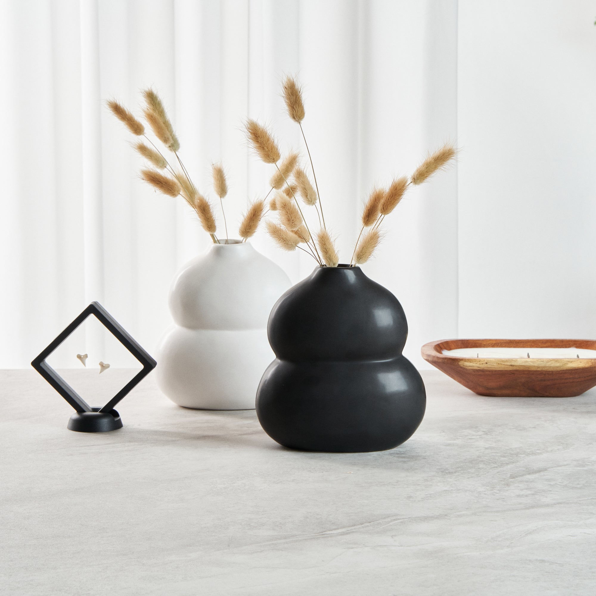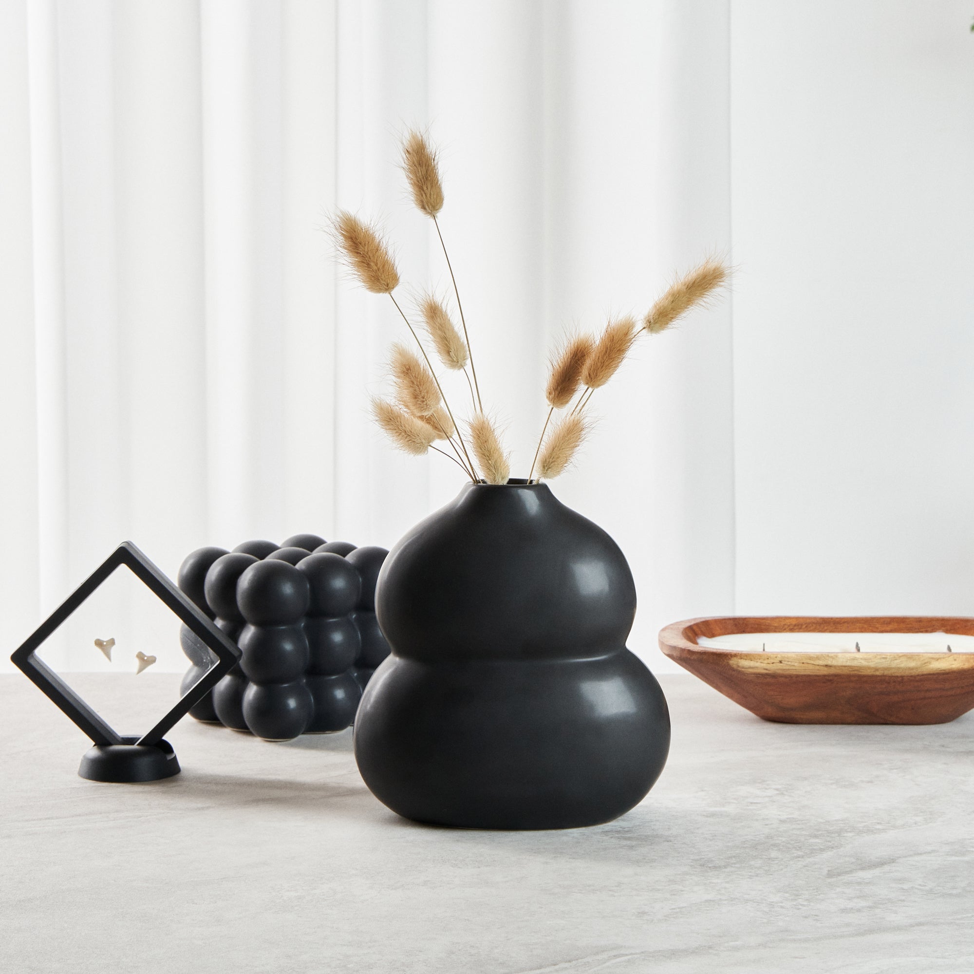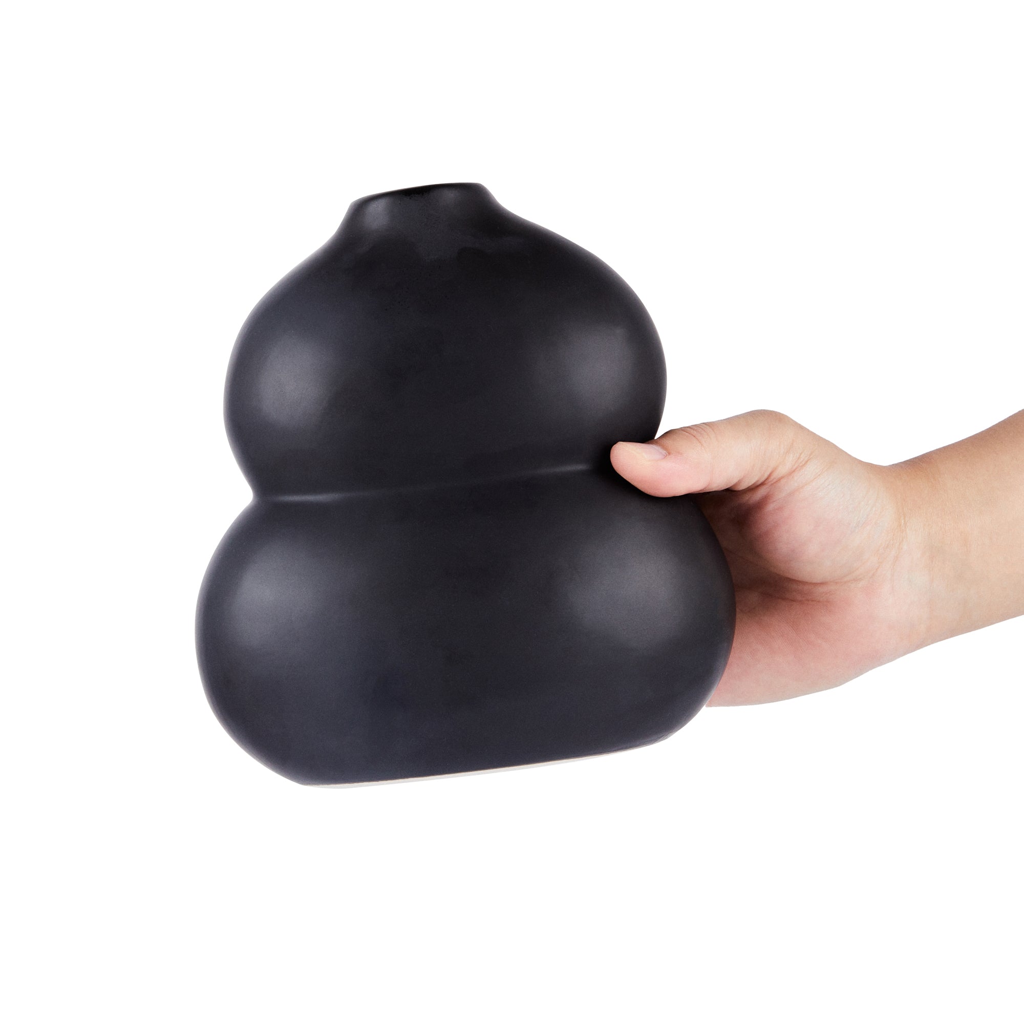 Showcase your favorite blooms with our Table Art Black Ceramic Gourd Vase. This ceramic vase features a gourd-inspired design, combining graceful curves to create a stylish and unique accent for any decor. With a black finish, this flower vase exudes a contemporary allure, adding a sophisticated touch to any space it inhabits. Crafted from premium ceramic, this decorative vase is durable and sturdy, making it ideal for long-lasting use. With a stable base, this centerpiece vase minimizes the risk of tipping over to keep your floral arrangements intact. This table vase suits various settings, complementing traditional and contemporary decor styles. The versatile design of this black vase allows you to use it as a standalone centerpiece or vessel for displaying your floral arrangements. This black ceramic vase can be hand washed with soap and water to maintain its pristine appearance. Measuring 6.5 inches in length by 4 inches in width by 6.9 inches in height, this black decorative vase fits perfectly in various spaces. Sold in a 1 count box.