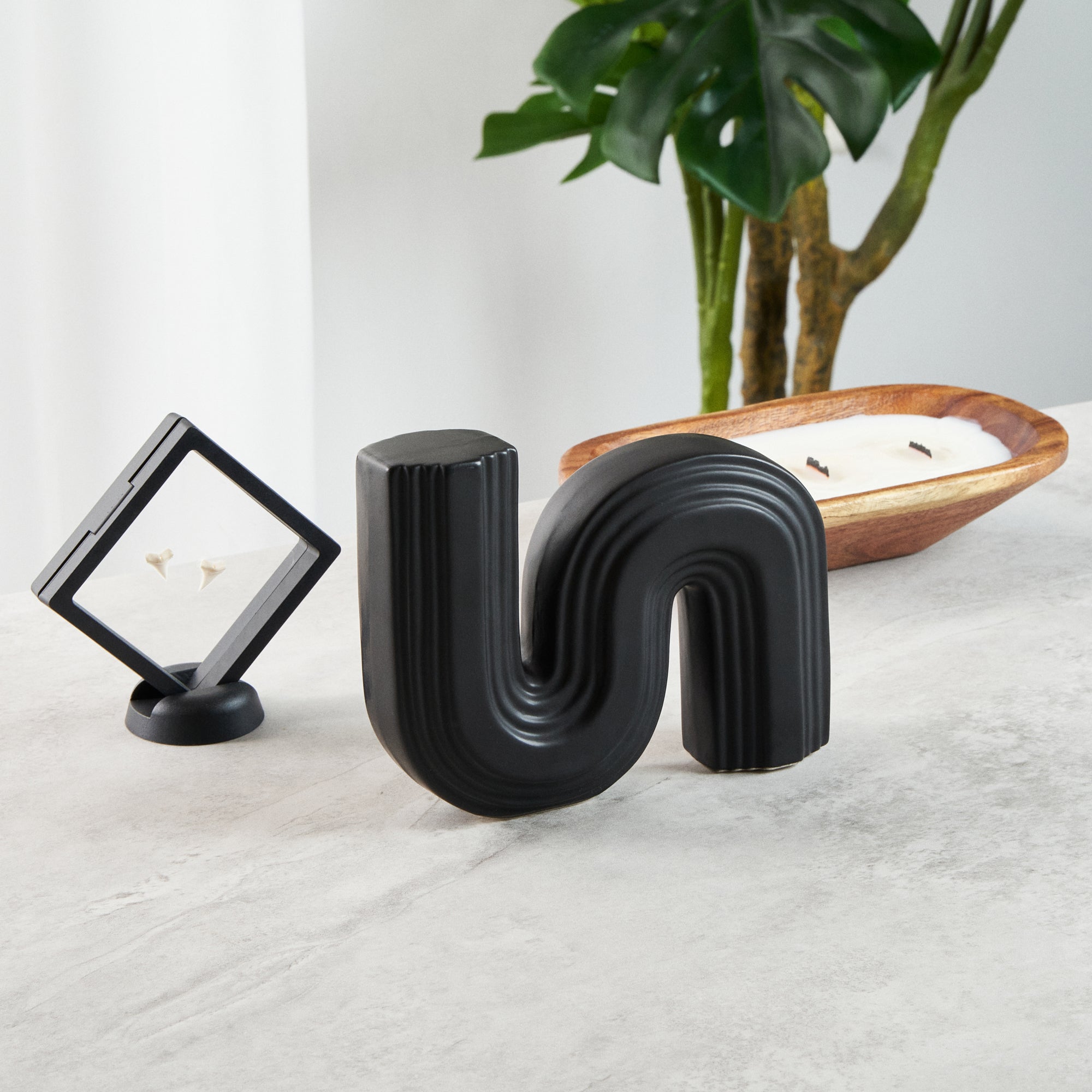 Elevate your space with our Table Art Black Ceramic S-Shaped Vase. With an elegant S-shaped design, this black ceramic vase creates visual interest and is a captivating focal point in any room. The sleek black finish of this ceramic vase adds a touch of sophistication and refinement to any space it graces. This black vase is crafted from premium ceramic for long-lasting durability and sturdiness. The sturdy base of this flower vase minimizes the risk of tipping over and ensures your floral arrangements are securely displayed. This centerpiece vase complements a wide variety of settings, from office spaces to cozy living rooms. The versatile design of this decorative vase allows it to function as a standalone centerpiece or elegantly showcase your beautiful floral arrangements. This table vase can be cleaned with soap and water, facilitating easy upkeep and maintenance. Measuring 7.2 inches in length by 1.9 inches in width by 5.9 inches in height, this black flower vase is perfectly sized for various uses. Sold in a 1 count box.