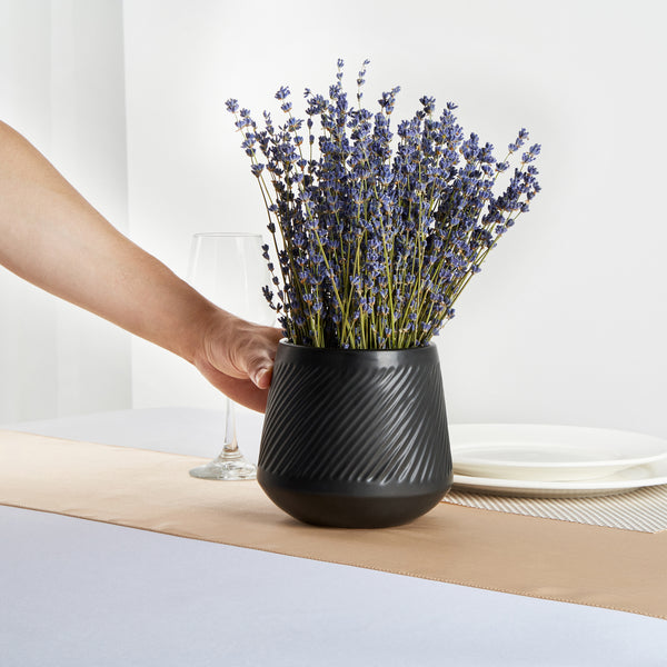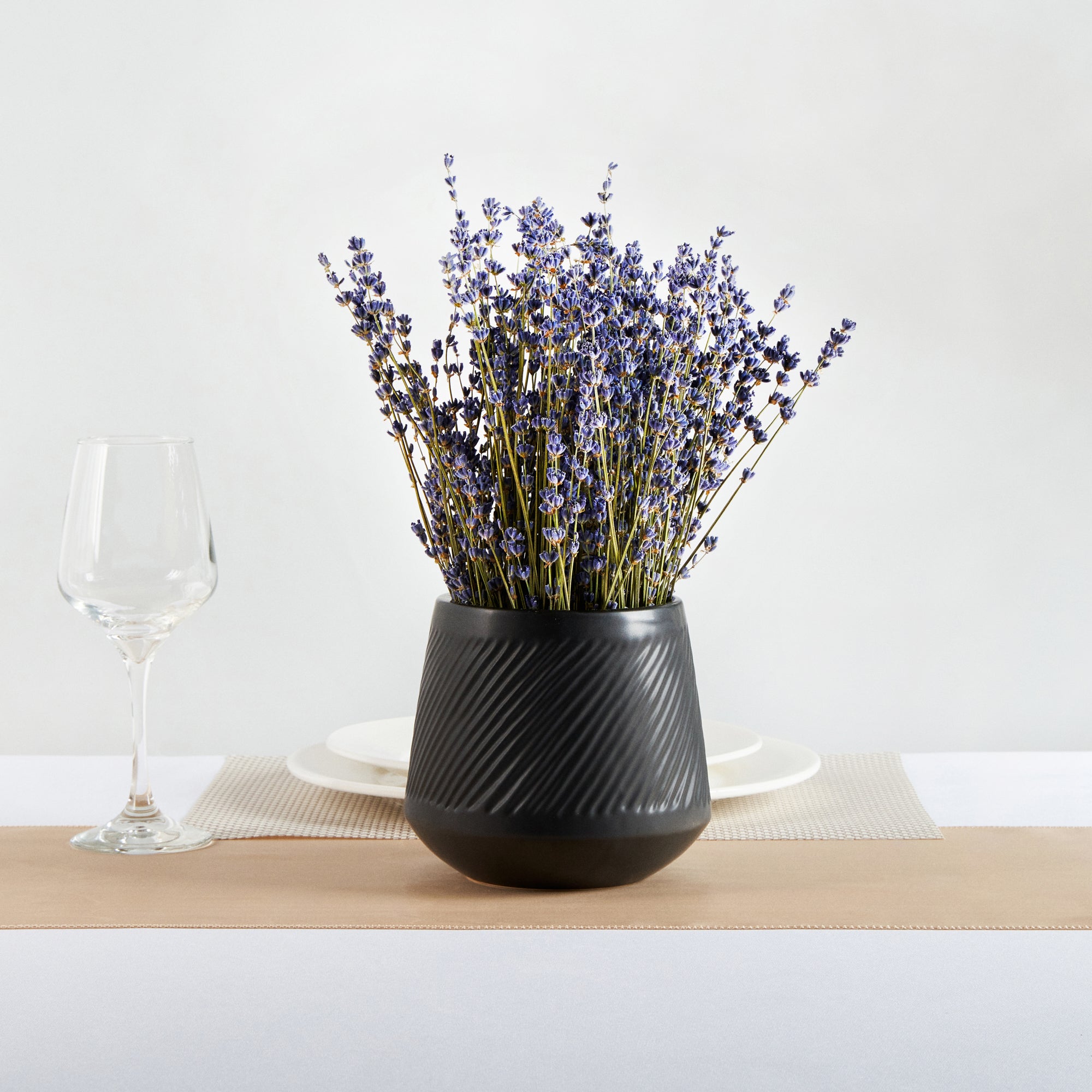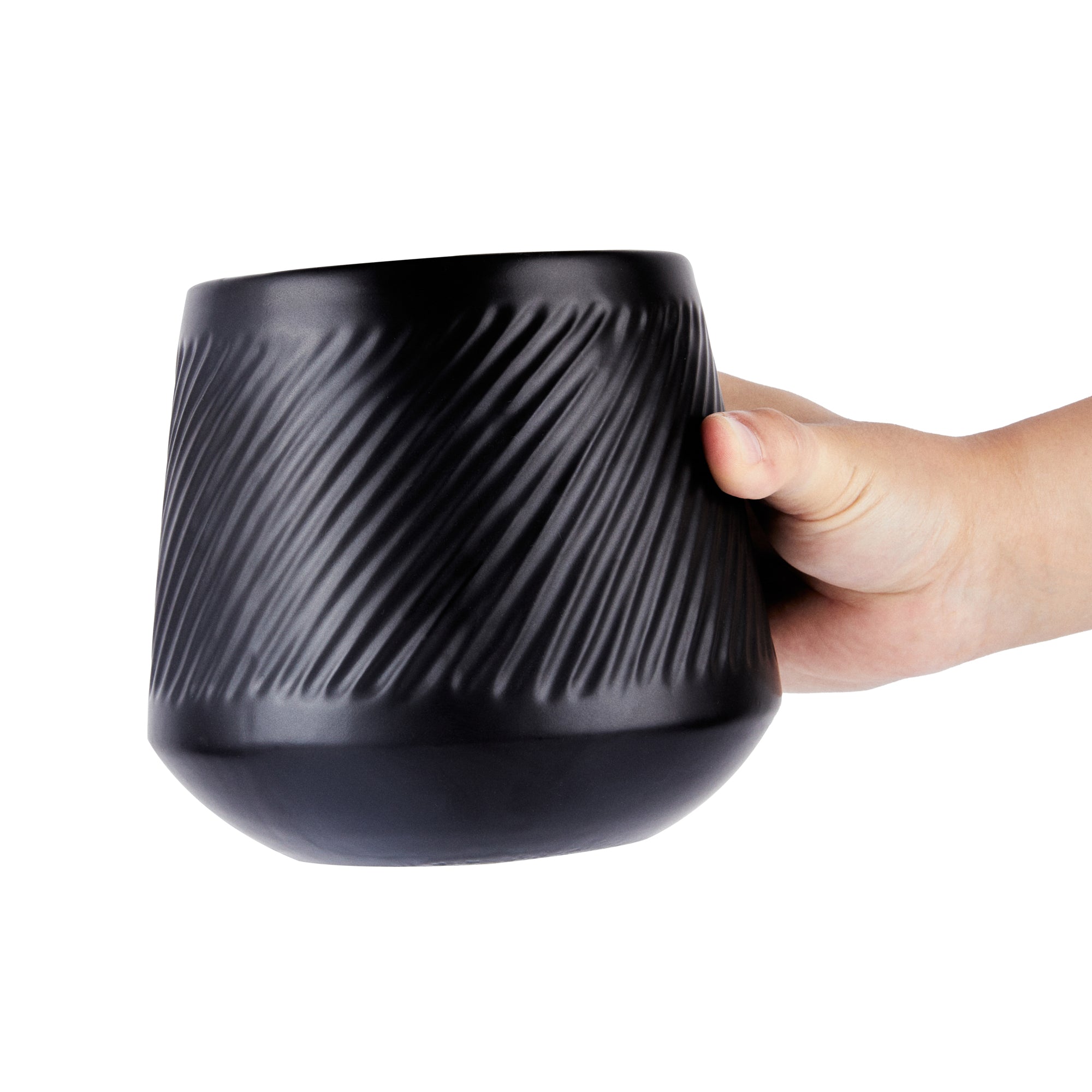 Elevate your office space with our Table Art Black Ceramic Tea Cup Vase. This ceramic vase has a unique tea cup-inspired design and adds a touch of whimsy charm to any space. The black finish of this flower vase offers a sleek and understated look that complements any decor style with effortless simplicity. Made from premium ceramic, this decorative vase is durable and sturdy, ideal for long-lasting use. The stable base of this centerpiece vase reduces the risk of tipping over, ensuring your arrangements stay intact. This black vase complements any room with its minimalist elegance, effortlessly enhancing the aesthetic appeal of office spaces or living rooms. The versatile design of this table vase makes it ideal for showcasing your favorite blooms or as a charming decorative accent for your space. To maintain its pristine condition, this black ceramic vase can be hand washed with soap and water for easy maintenance. Measuring 5.9 inches in diameter by 5.6 inches in height, this black decorative vase fits perfectly in various settings. Sold in a 1 count box.