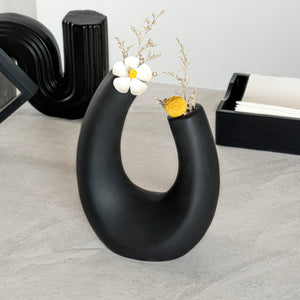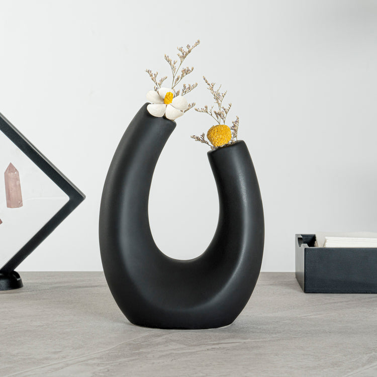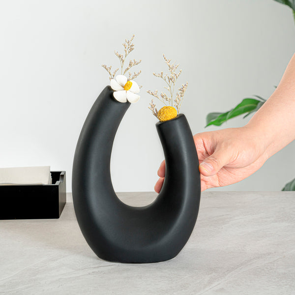 BLACK CERAMIC U-SHAPED VASE