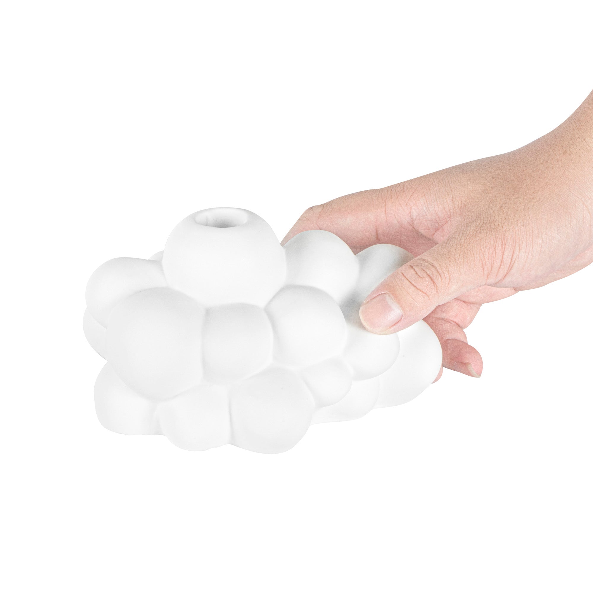 Enhance any space with our Table Art White Ceramic Bubble Vase. Featuring a bubble-inspired design, this ceramic vase brings a whimsical and artistic flair to any space, adding a unique and playful touch to your decor. With a white finish, this candle holder embodies timeless elegance, blending with any decor style. Made from ceramic, this decorative vase is sturdy and durable for long-lasting use. The stable base of this centerpiece vase reduces the risk of tipping over. This table vase suits various settings and complements traditional or contemporary decor styles. The versatile design of this bubble vase allows you to use it as a standalone structural accent to your decor. This white vase can be hand washed with soap and water to maintain its pristine appearance, facilitating easy upkeep. Measuring 6.5 inches in length by 4 inches in width by 4 inches in height, this white ceramic vase is compact and stylish. Sold in a 1 count box.