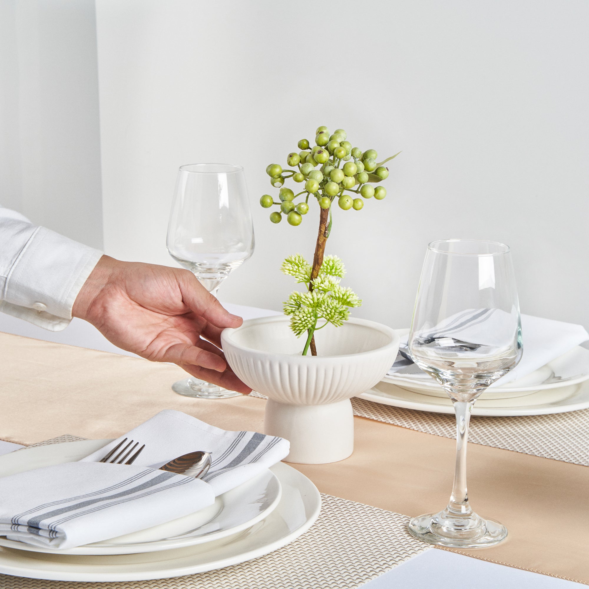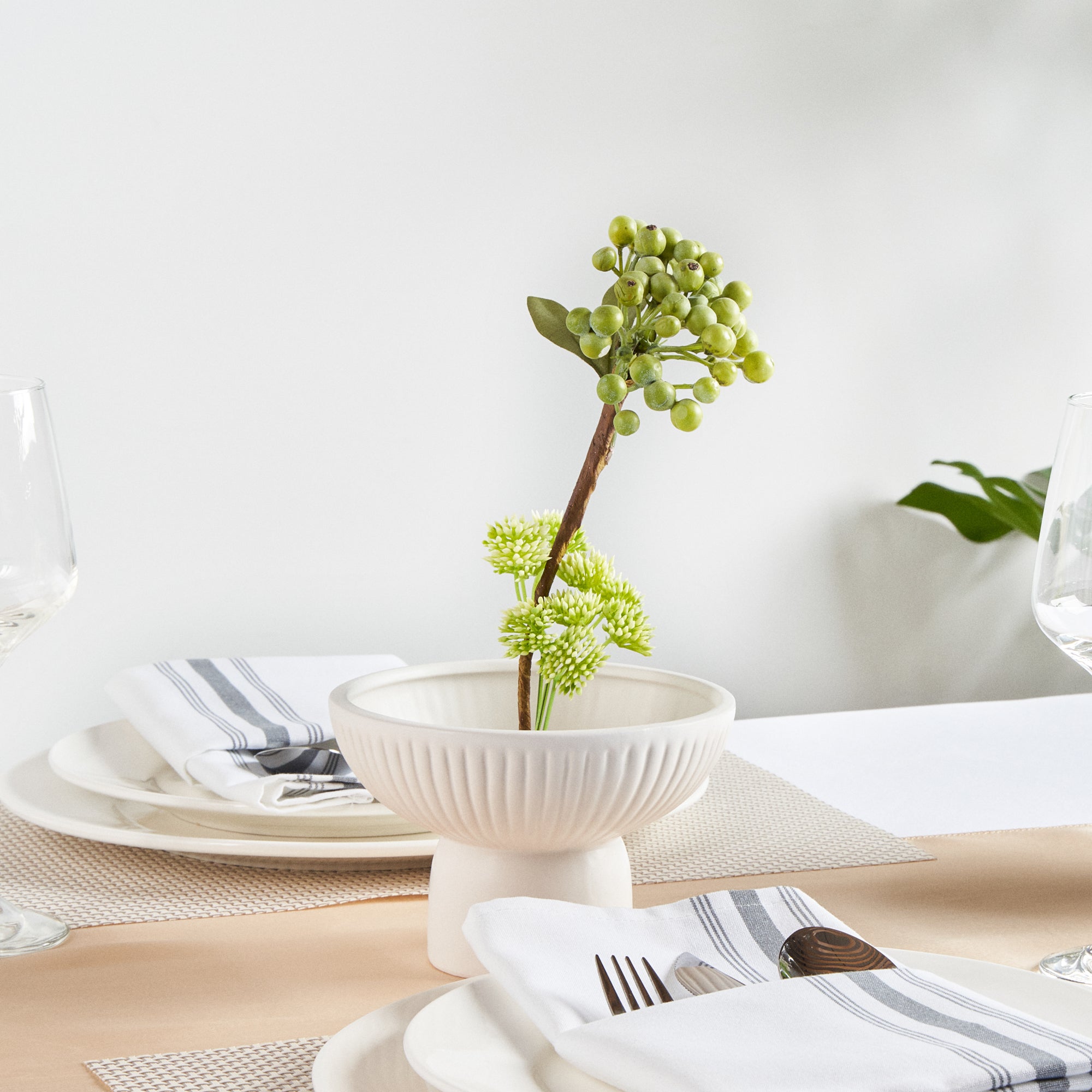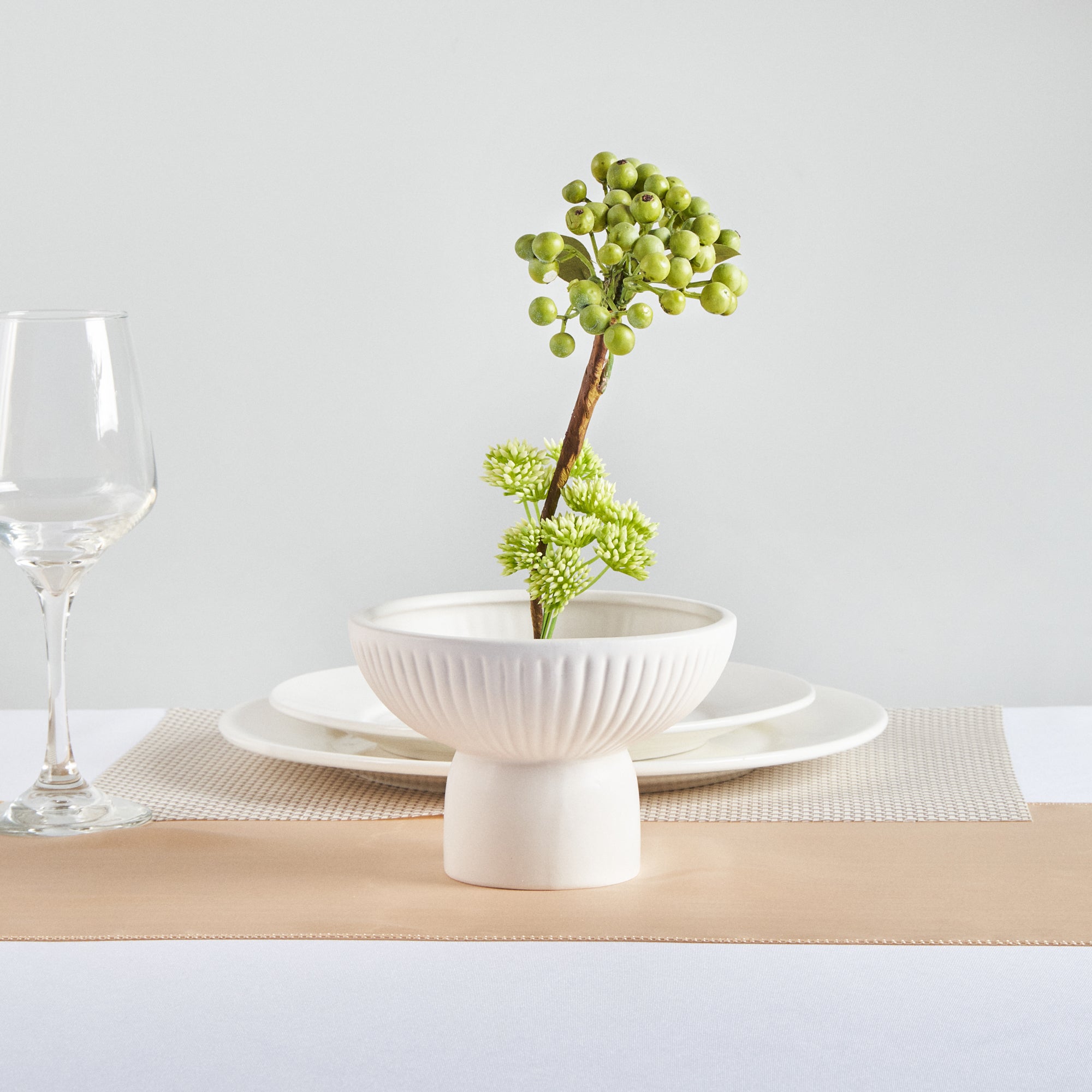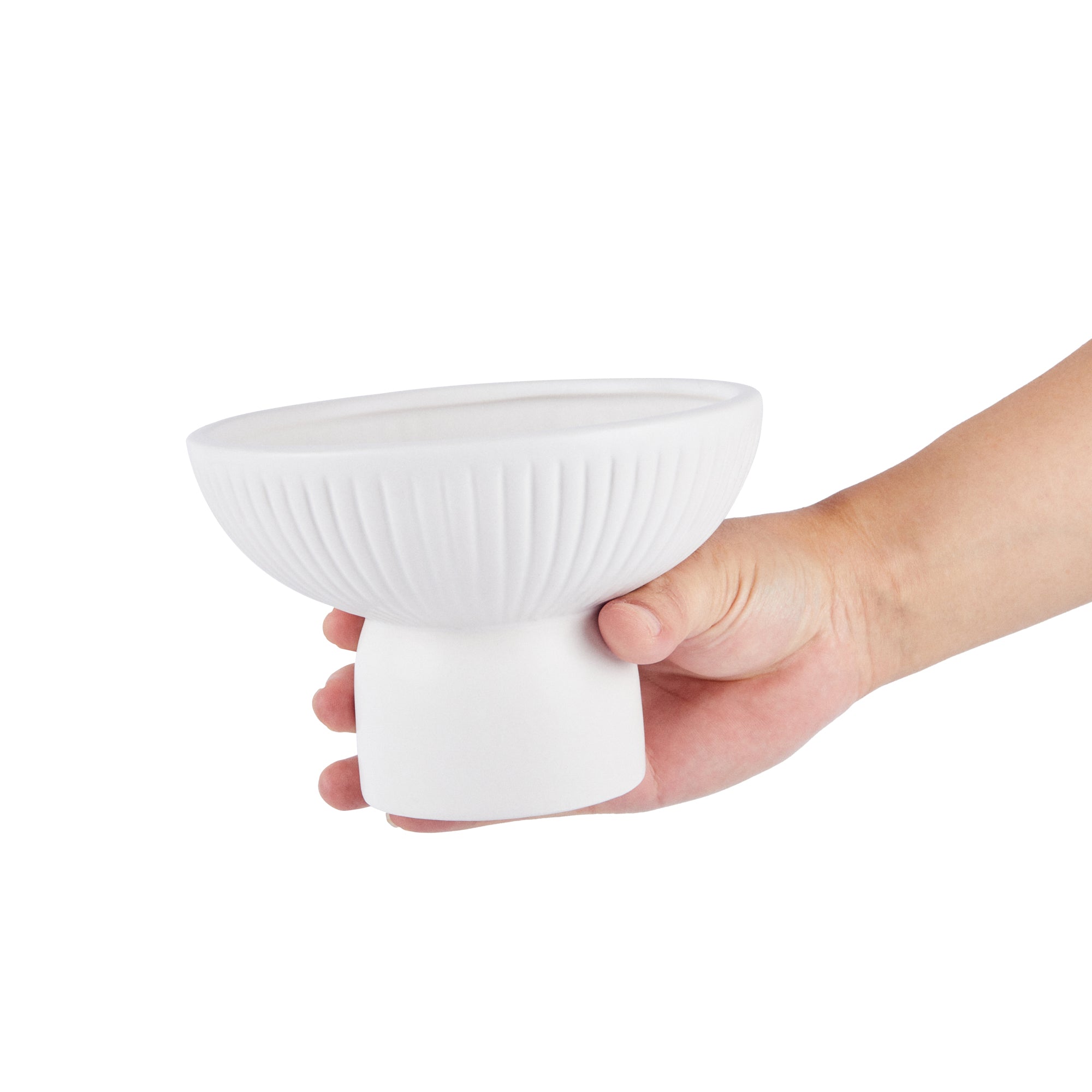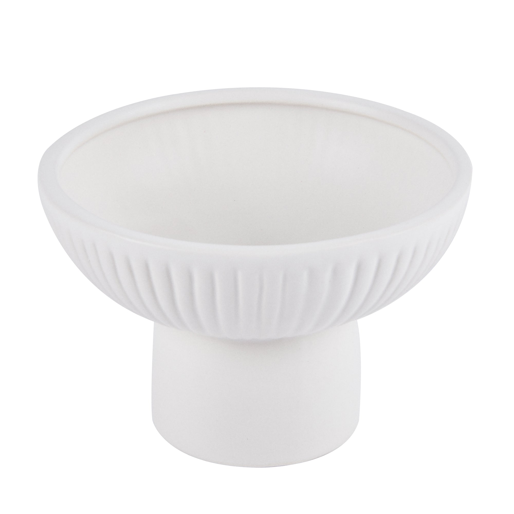 Display your refined taste in style with our Table Art White Ceramic Pedestal Vase. This ceramic vase is designed with a pedestal-inspired style, creating a sophisticated and elegant focal point that enhances any decor. The raised base of this flower vase makes a sturdy foundation and prevents tipping over, which is ideal for showcasing your blooms. With a white finish, this decorative vase adds a touch of minimalist elegance, providing a clean and timeless look. This centerpiece vase is crafted from premium ceramic, ensuring long-lasting durability and sturdiness for years to come. Suitable for various settings, this table vase complements traditional and contemporary decor styles. This white vase can be used as a solo structural accent for your decor or a vessel to display vibrant floral arrangements. For easy maintenance, this white ceramic vase can be conveniently hand washed with soap and water to maintain its pristine appearance. Measuring 6 inches in diameter by 4.1 inches in height, this white decorative vase fits perfectly in various spaces. Sold in a 1 count box.