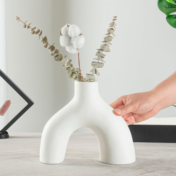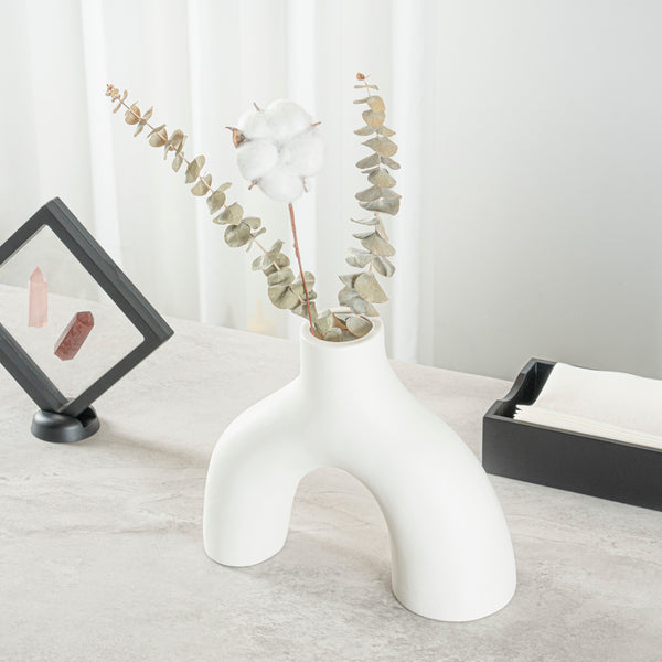 WHITE CERAMIC SOFT ARCH VASE