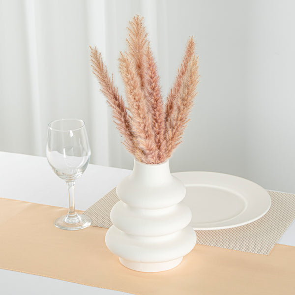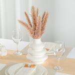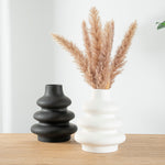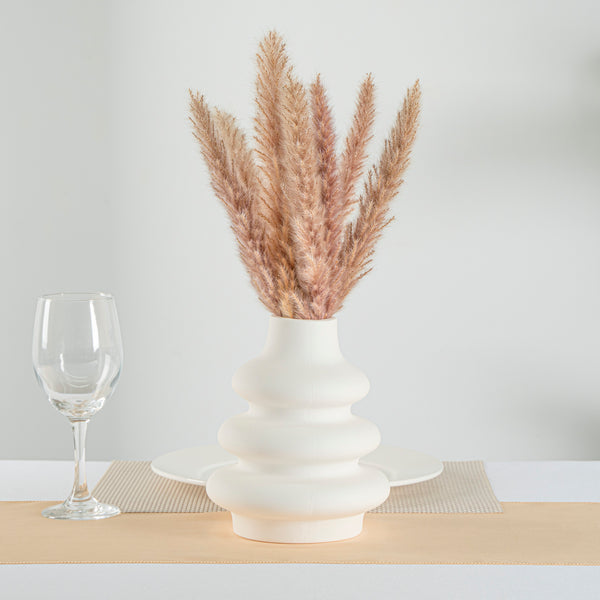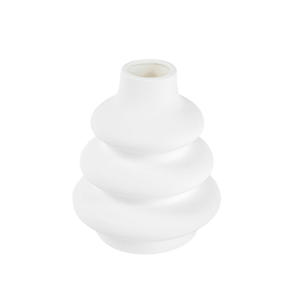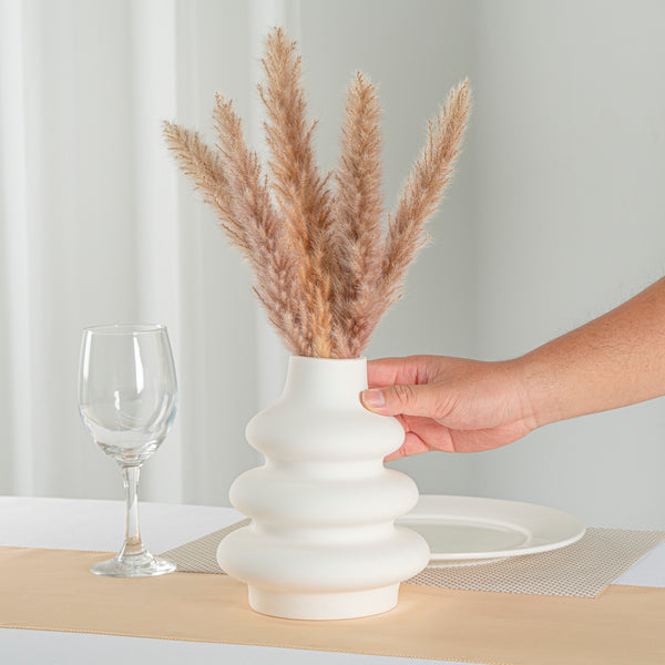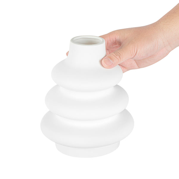 Enhance your home or event decor with our Table Art White Ceramic Stacked Vase. This ceramic vase showcases an exquisite design characterized by gentle contours, elevating its visual charm and introducing an air of graceful sophistication to any setting. The classic white finish of this flower vase exudes contemporary elegance, making it a stylish addition to any decor scheme. Crafted from premium ceramic, this decorative vase ensures durability and sturdiness, ensuring it remains a cherished piece for years to come. Featuring a sturdy base, this centerpiece vase minimizes the risk of tipping over, ensuring your floral displays stay secure. Suitable for both traditional and modern decor, this table vase complements a variety of settings in homes or offices. The versatile design of this white vase allows it to function as a refined centerpiece or a chic container for floral arrangements, enriching the atmosphere of any room. This white ceramic vase can be easily hand washed, facilitating simple maintenance to preserve its pristine appearance. Measuring 6.75 inches in length by 6.75 inches in width by 8 inches in height, this white decorative vase adds a perfect touch of elegance to your decor. Sold in a 1 count box.