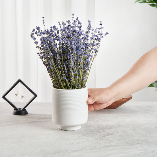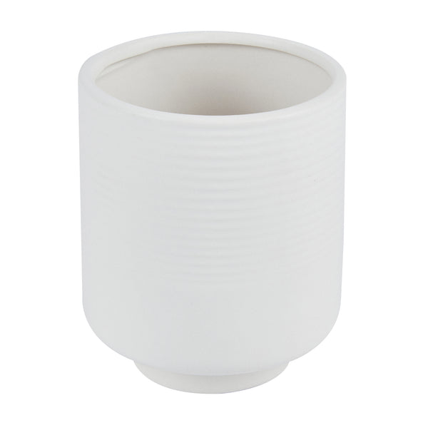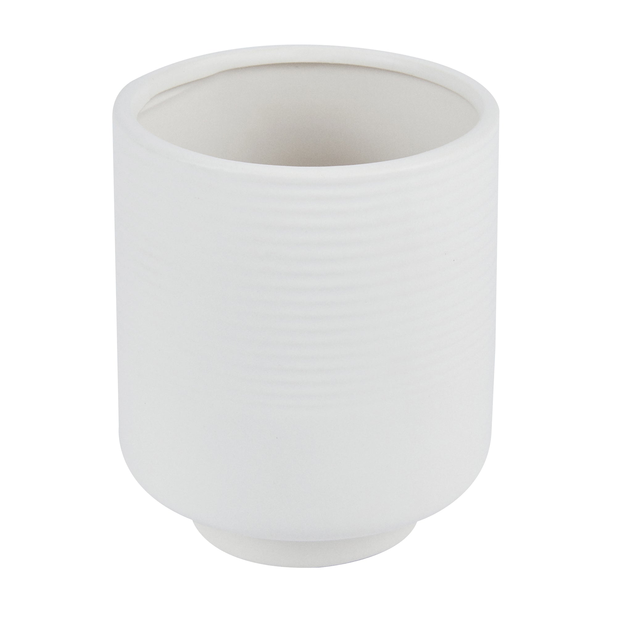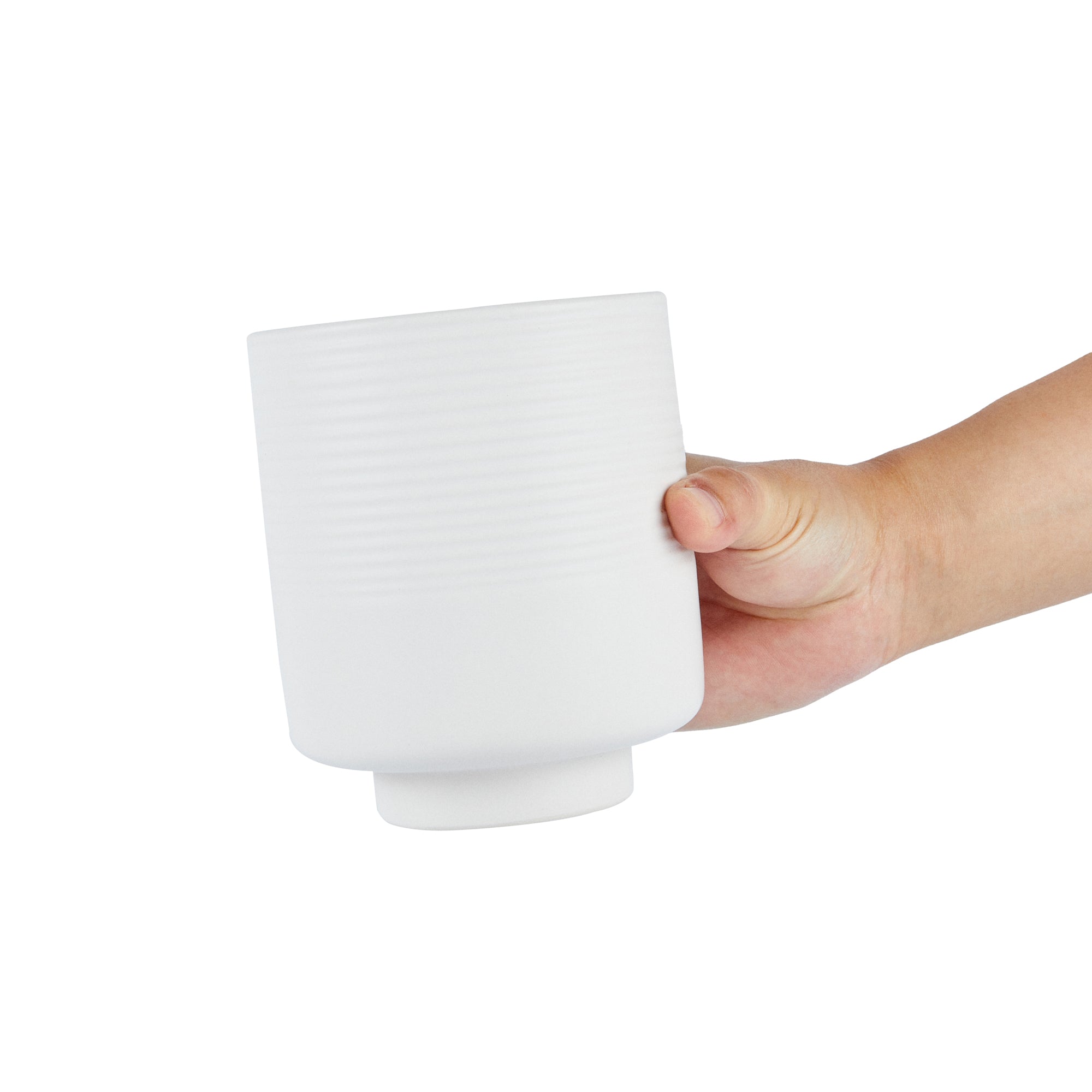 Enhance the ambiance of your space with our Table Art White Ceramic Tea Cup Vase. This flower vase has a tea cup-inspired design, serving as a delightful visual focal point for any floral arrangement or decorative display. With a classic white finish, this ceramic vase exudes a minimalist charm, perfect for enhancing the aesthetic of any space with its understated elegance. Made from ceramic, this decorative vase is durable and sturdy, ideal for long-lasting use. The sturdy base of this centerpiece vase minimizes the risk of tipping over, keeping your floral arrangements intact. This table vase complements various settings, from offices to living rooms, adding a touch of sophistication wherever it's placed. The versatile design of this white vase makes it ideal as a standalone centerpiece or a stylish vessel for floral arrangements to complement any decor. To maintain its pristine appearance, this white ceramic vase can be hand washed with soap and water for easy upkeep. Measuring 4.5 inches in diameter by 4.9 inches in height, this white flower vase is compact yet makes a bold statement. Sold in a 1 count box.