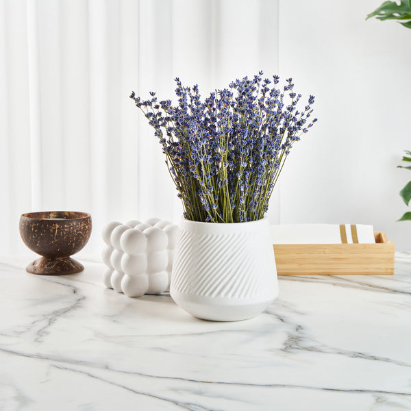Display the season’s fragrant blooms with our Table Art White Ceramic Tea Cup Vase. Featuring a tea cup-inspired design, this flower vase adds a charming touch to any room, blending elegance with a whimsical flair. Boasting a classic white finish, this ceramic vase complements modern and traditional settings with minimalist elegance. Made from premium ceramic, this table vase is durable and sturdy, ensuring it maintains a pristine appearance over time. Featuring a stable base, this centerpiece vase significantly reduces the risk of tipping over, keeping your floral arrangements intact. This white flower vase is versatile and ideal for displaying your favorite blooms or as a decorative piece. Suitable for various settings, this white ceramic vase complements your office space, dining rooms, and more with its classic simplicity. This white vase can be hand washed with soap and water to maintain its pristine appearance, facilitating easy upkeep. Measuring 5.9 inches in diameter by 5.6 inches in height, this decorative vase fits perfectly on any table or shelf. Sold in a 1 count box.