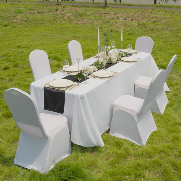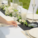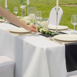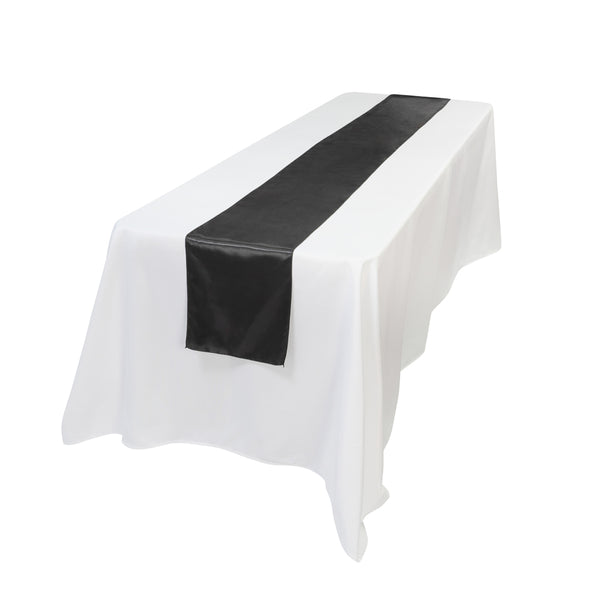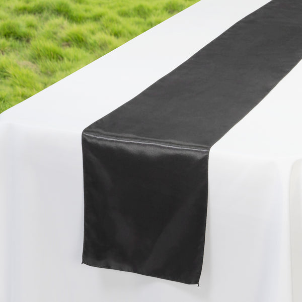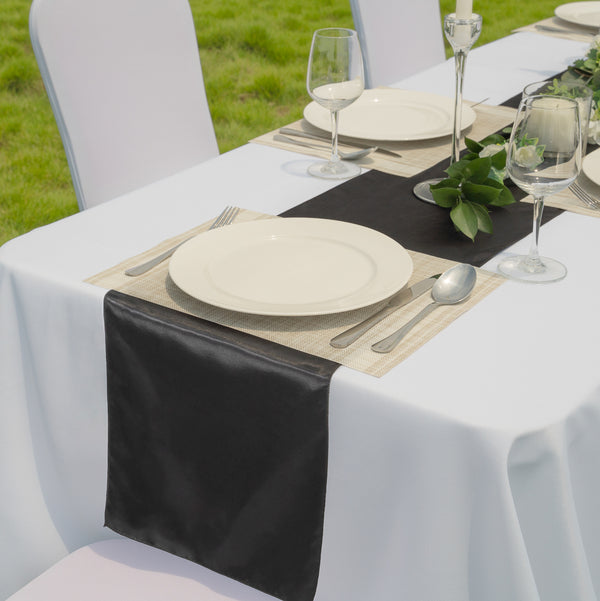 Beautifully decorate your table setting with our Table Tek Black Satin Table Runner. With an elegant black finish, this fabric table runner gives your tablescape a touch of sophistication. Featuring a satin weave, this black table runner has a silky look and feel to impress your guests at catered events. The one-piece design of this tablecloth runner creates a seamless appearance to enhance your dining table decorations. To shorten your cleaning process, this luxury table runner is machine-washable on the gentle cycle with cold water. This runner cannot be washed with bleach to avoid damage. For easy maintenance, this tablecloth runner can be put in the dryer using a medium heat setting to protect against wrinkles. This dining table runner measures 12 inches long by 108 inches wide. Sold in a 1 count box.