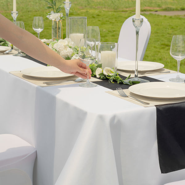 - Satin weave elevates tablescapes with sophistication and luxurious shine to tablescapes