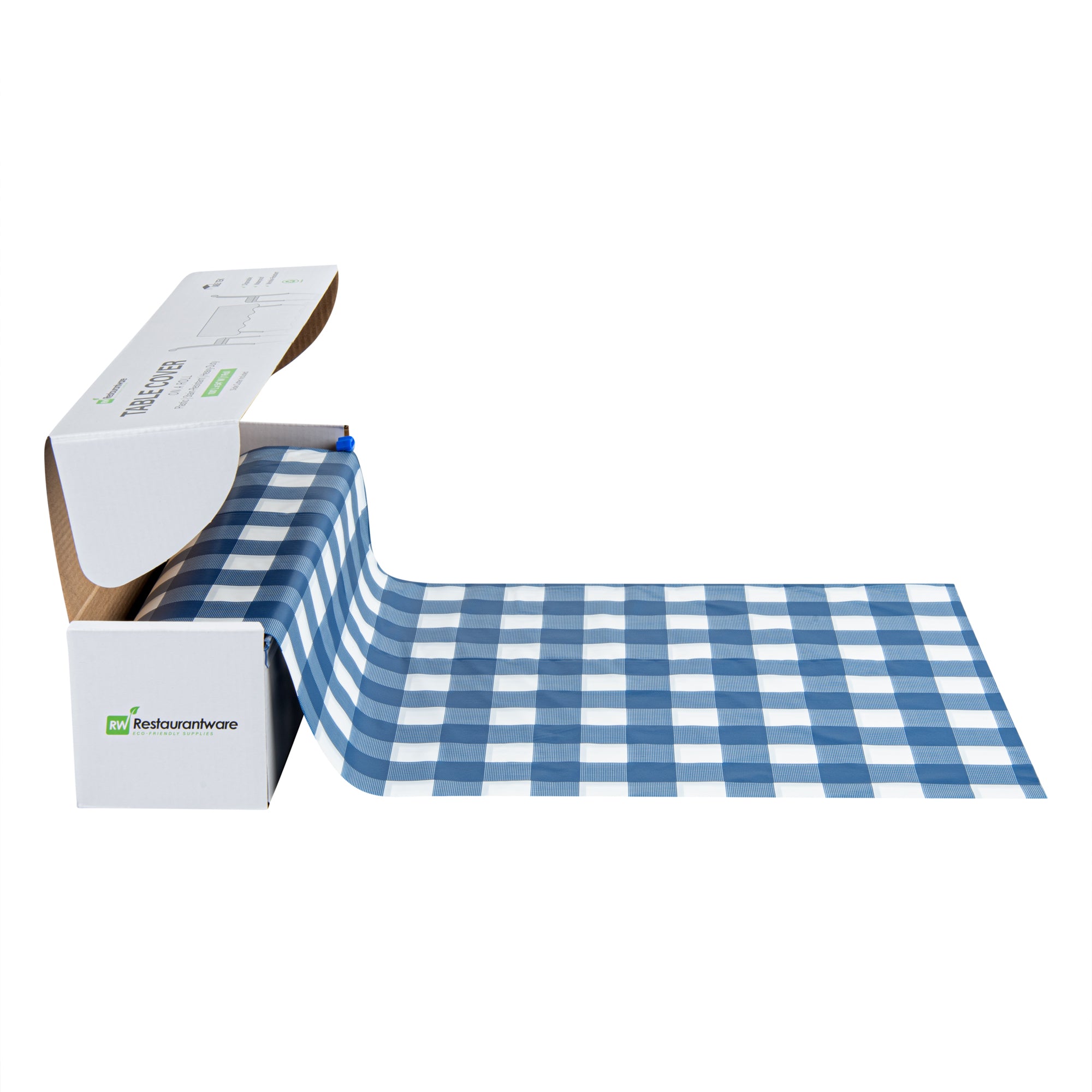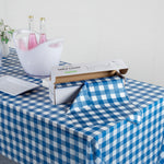 BLUE GINGHAM PLASTIC TABLE COVER ROLL - WITH SLIDE CUTTER