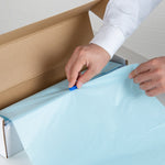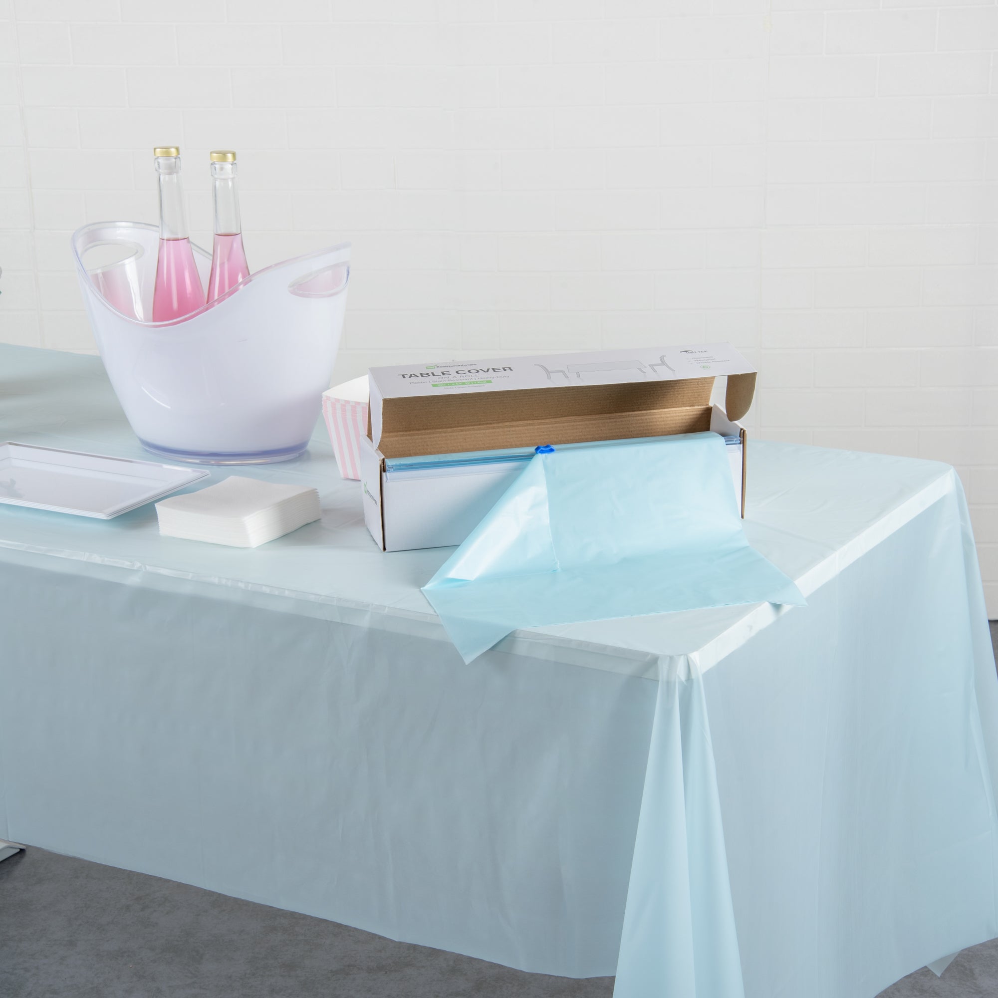 BLUE PLASTIC TABLE COVER ROLL - WITH SLIDE CUTTER