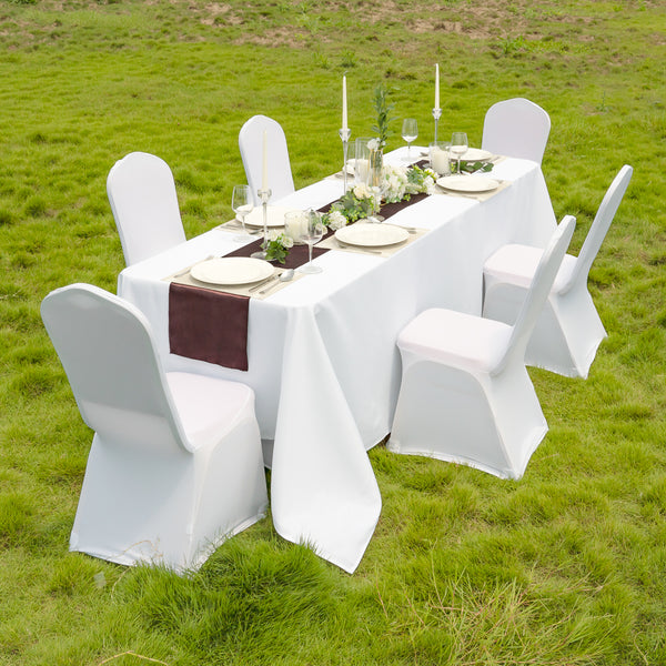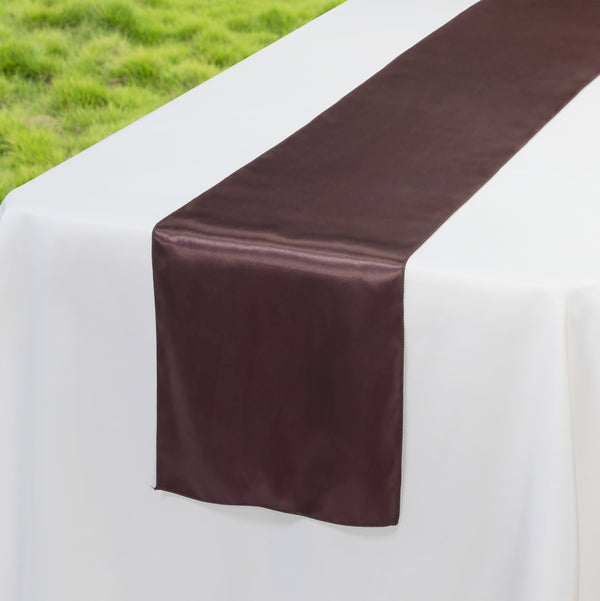 Give your table a sophisticated look using our Table Tek Dark Brown Satin Table Runner. With a dark brown finish, this dining runner can be placed on a bare table to accent the tabletop or coordinated with your tablecloth to complement the theme of your catered event. Made from premium polyester with a satin weave, this table runner is glossy to add an elegant layer to any dining table at your formal event or upscale restaurant. The seamless one-piece design of this dark brown table runner gives your table a luxurious and clean look. This catering table runner can be machine washed in a gentle cycle with cold water and tumble-dried using medium heat to eliminate the hassle of hand washing the runner after events. You should not bleach this table runner to preserve its quality. This dining runner measures 108 inches in length by 12 inches in width. Shipped in a 1 count box.