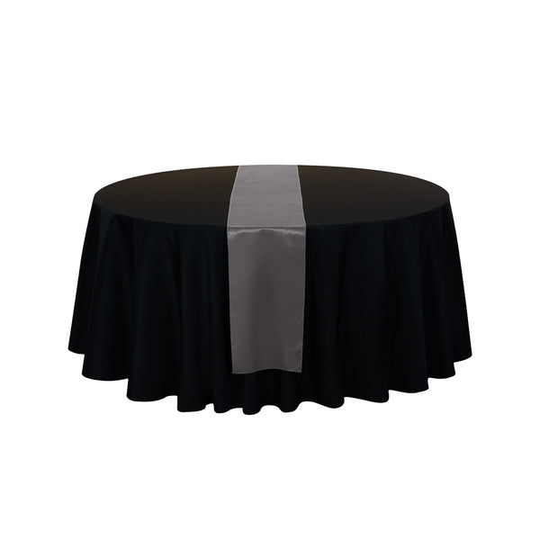 Dress up your table with elegance using our Table Tek Dark Gray Satin Table Runner. This dark gray table runner has a silky appearance and can be used to harmonize or contrast decor. With a one-piece design, this satin table runner doesn't have seams which allow you to create luxurious and memorable table presentations at weddings or fine-dining establishments. This polyester table runner can be machine washed in a gentle cycle with cold water and tumble-dried using medium heat for an easy way to thoroughly clean them after use. It is recommended not to use bleach when cleaning this table runner to prevent damage. This table runner for events measures 108 inches long by 12 inches wide. Sold in a 1 count box.