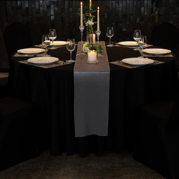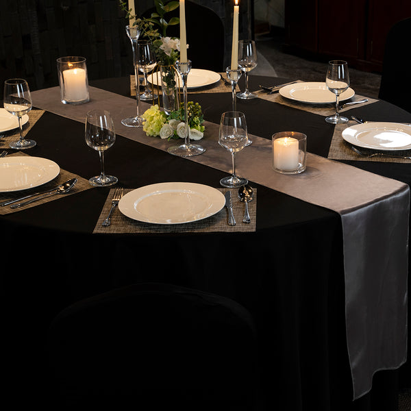 Dress up tables with elegance using our Table Tek Dark Gray Satin Table Runners. These dark gray table runners have a silky appearance and can be used to harmonize or contrast decor. With a one-piece design, these satin table runners don't have seams which allow you to create luxurious and memorable table presentations at weddings or fine-dining establishments. These polyester table runners can be machine washed in a gentle cycle with cold water and tumble-dried using medium heat for an easy way to thoroughly clean them after use. It is recommended not to use bleach when cleaning these table runners to prevent damages. These table runners for events measure 108 inches long by 12 inches wide. Sold in a 10 count box.