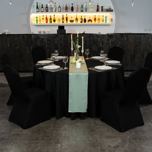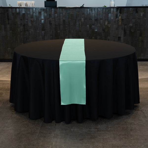 Make your table the talk of any event by decorating it using our Table Tek Light Green Satin Table Runner. Featuring a light green finish, this table runner can be easily mixed and matched with colors used at your restaurant or catered event to add an elegant touch to your table. This light green table runner has a satin finish, providing it with a glossy look that complements the ambiance at your upscale foodservice establishment. With a one-piece design, this light green table runner is seamless to give your table a clean and stylish look. Crafted from polyester, this green runner for tables can be machine washed in a gentle cycle with cold water and tumble-dried using medium heat to make cleaning a breeze. You should not use bleach to clean this satin table runner to preserve its quality. This light green runner measures 108 inches long by 12 inches wide. Shipped in a 1 count box.