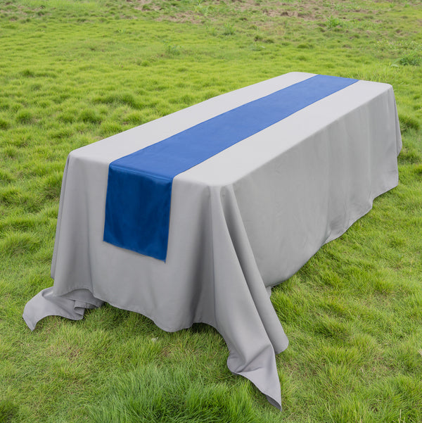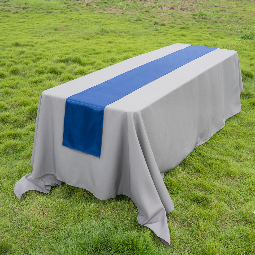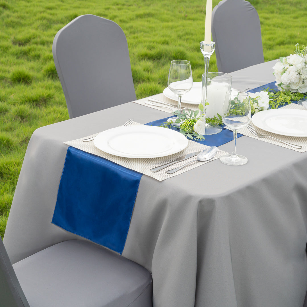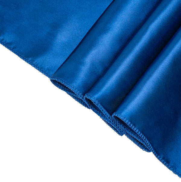 Add the finishing touch to tablescapes using our Table Tek Navy Blue Satin Table Runners. Featuring a satin weave and navy blue finish, these table runners have an eye-catching shine that is sure to impress your guests. Made with high-quality polyester, the one-piece design of these navy table runners creates a seamless appearance and is ideal for quickly arranging elegant table settings. These blue table runners are machine-washable for an easy way to clean them after events. Help avoid wrinkles after washing by drying these table runners on a medium heat setting. Great for tables of all sizes, these blue table runners measure 108 inches in length by 12 inches in width. Do not use bleach to keep these runners looking new. Sold in a 10 count box.