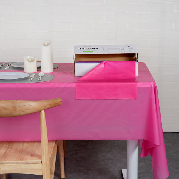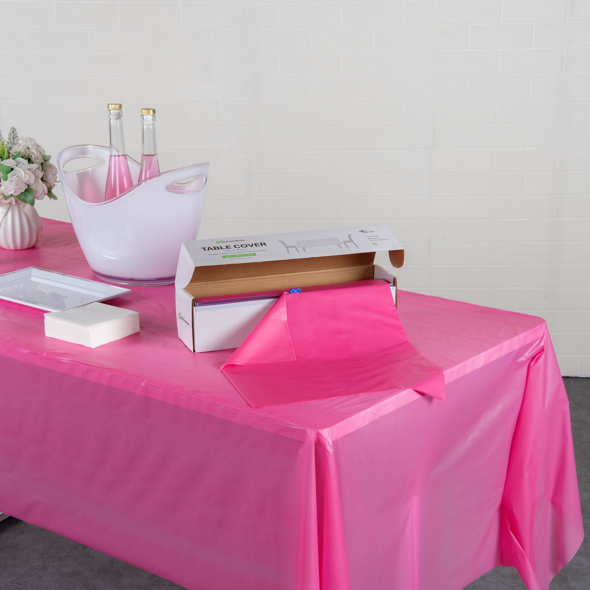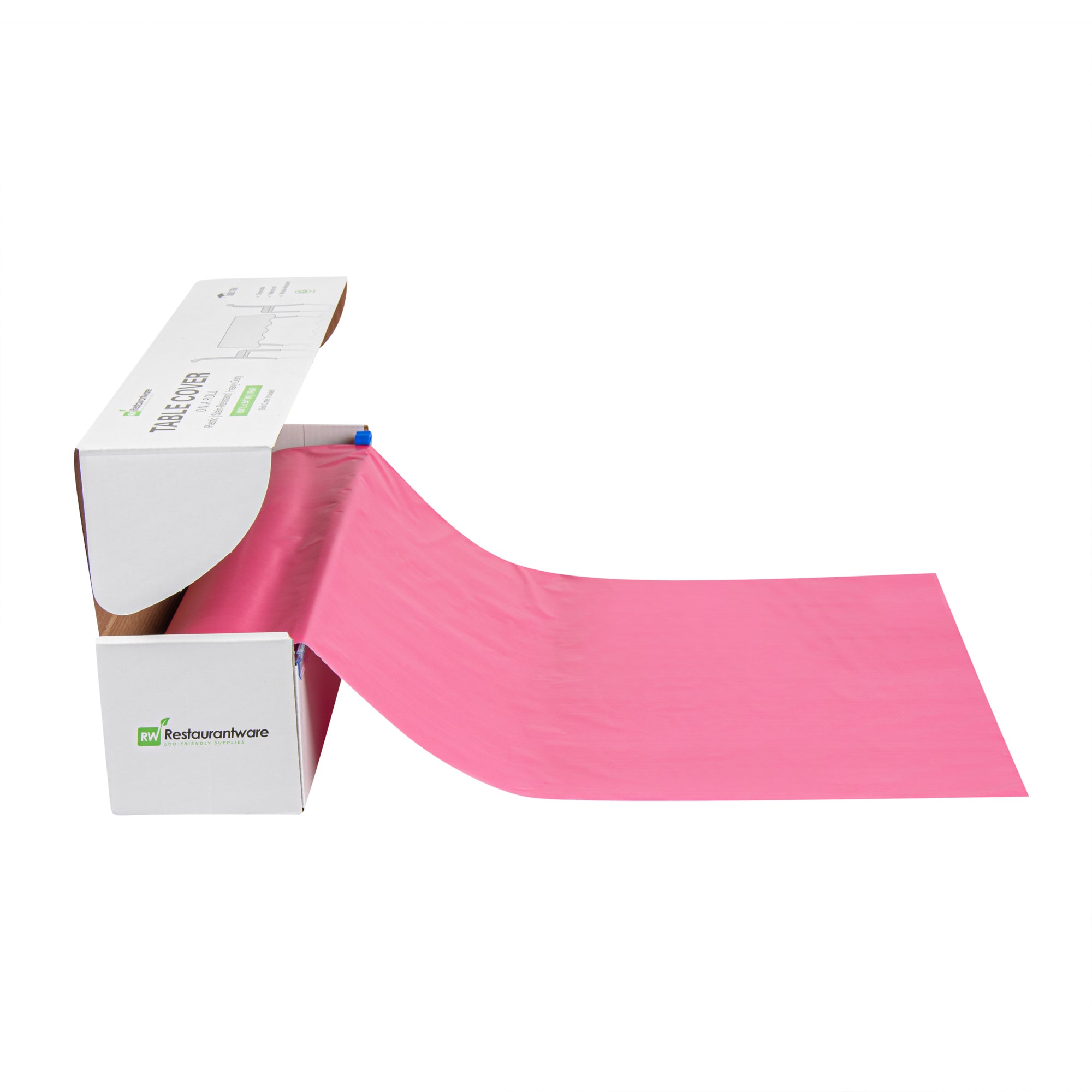 PINK PLASTIC TABLE COVER ROLL - WITH SLIDE CUTTER