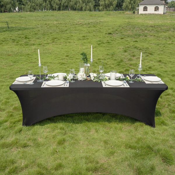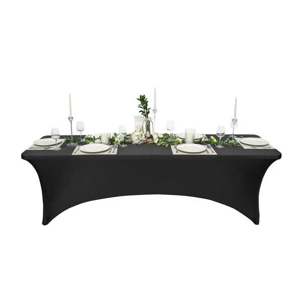 Made from a stretchable fabric, these spandex table covers stretch to fit various table shapes and sizes. Provides exceptional stretchability to conform to even unconventional table shapes unlike standard tablecloths.